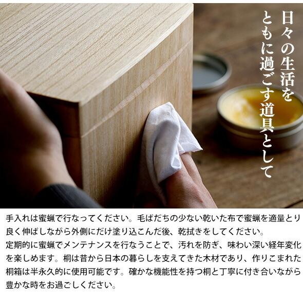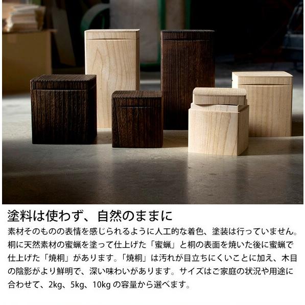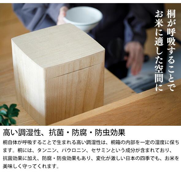 焼桐加工により、木材内部の水分を調整し、防湿性をさらに高めています。また、桐特有の成分には虫が寄り付きにくい性質があり、お米を清潔に保管することが可能です。保存環境を気にされる方にも安心してご使用いただけます。
