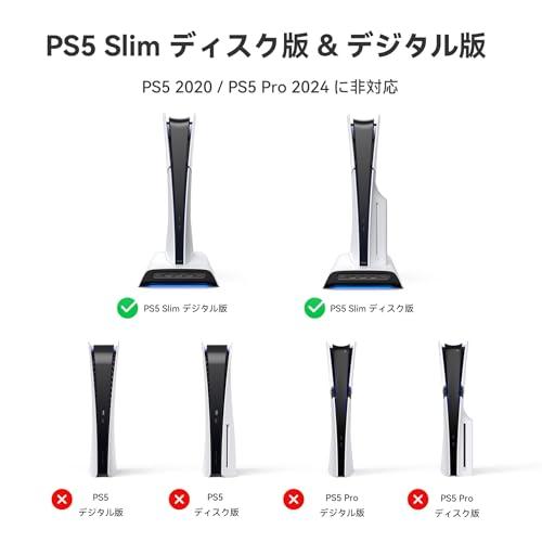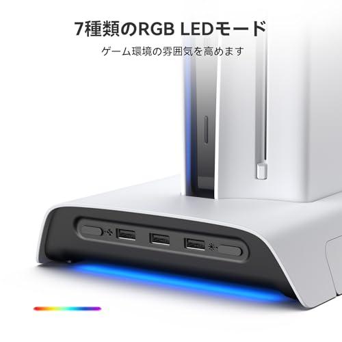 【対応機種】この縦置き冷却スタンドは PS5 SLIM ディスク&デジタル版に対応、PS5ディスク /デジタル版、PS5 Proに対応できません。 【PS5 Slim用RGB付き冷却スタンド】2段階の速度調整可能なターボ冷却ファン、デュアルコントローラー充電ステーション、7つのRGBモード、8つのゲームトレイ、3つのUSBポート、USB-Cケーブル、2つのType-C磁気ドングルを備え、コンソールを冷却し、すべてをより整理された状態に保ちます。PS5スリムに夢中な人への素晴らしいギフトオプションです。 【デュアルマグネット高速充電】D3充電ステーションは、2つのマグネットアダプターを搭載しており、ケーブルの絡まりを解消し、より便利な充電体験を提供します。わずか2時間でコントローラーをフル充電できます。LEDインジケーターは、コントローラーの状態を明確に表示します:充電中はオレンジ色、充電完了またはスタンバイモードの際は緑色に点灯します。過電圧、過電流、過熱、および回路のショートを防ぎ、安全な充電を提供することができます。 【省スペースと7種類のRGB照明効果】プレスアンドポップデザインを採用したD3冷却スタンドは、最大8枚のゲームディスクを収納できるため、デスクをすっきり保ちながら貴重なスペースを節約します。さらに、7つの異なるRGB照明効果と独自の呼吸モードにより、ゲーム体験にダイナミックでカスタマイズ可能なセンスを加え、すべてのプレイセッションに最適な雰囲気を作り出します。 【効率的な冷却と自動起動システム】PS5 Slimの電源を入れると、冷却ファンが自動的に起動し、5000?6500RPMのファン速度でコンソールの熱を側面から排出し、長時間のゲームプレイ中の過熱を防ぎます。より没入感のあるゲーム体験をお楽しみいただける上に、騒音も低減されます。 【3つのUSBハブと2つの設定ボタン】USB3.0ポートを3つ備え、コントローラーやヘッドセット、マウスなどのPS5周辺機器と簡単に接続可能。2つの設定ボタンを使用すると、ライトとファンの速度を簡単に調整して、特定の照明と冷却のニーズに簡単に対応できます。当社の冷却スタンドは安全ネジで設計されており、コンソールを垂直に固定することができ、PS5 Slim版公式スタンドの信頼できる代替品となります。