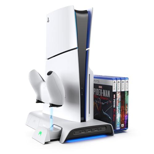 KIWI design D3 PS5 Slim Cooling Stand, Vertical Controller Charging Station with Magnetic RGB, Charging Two Controllers Simultaneously