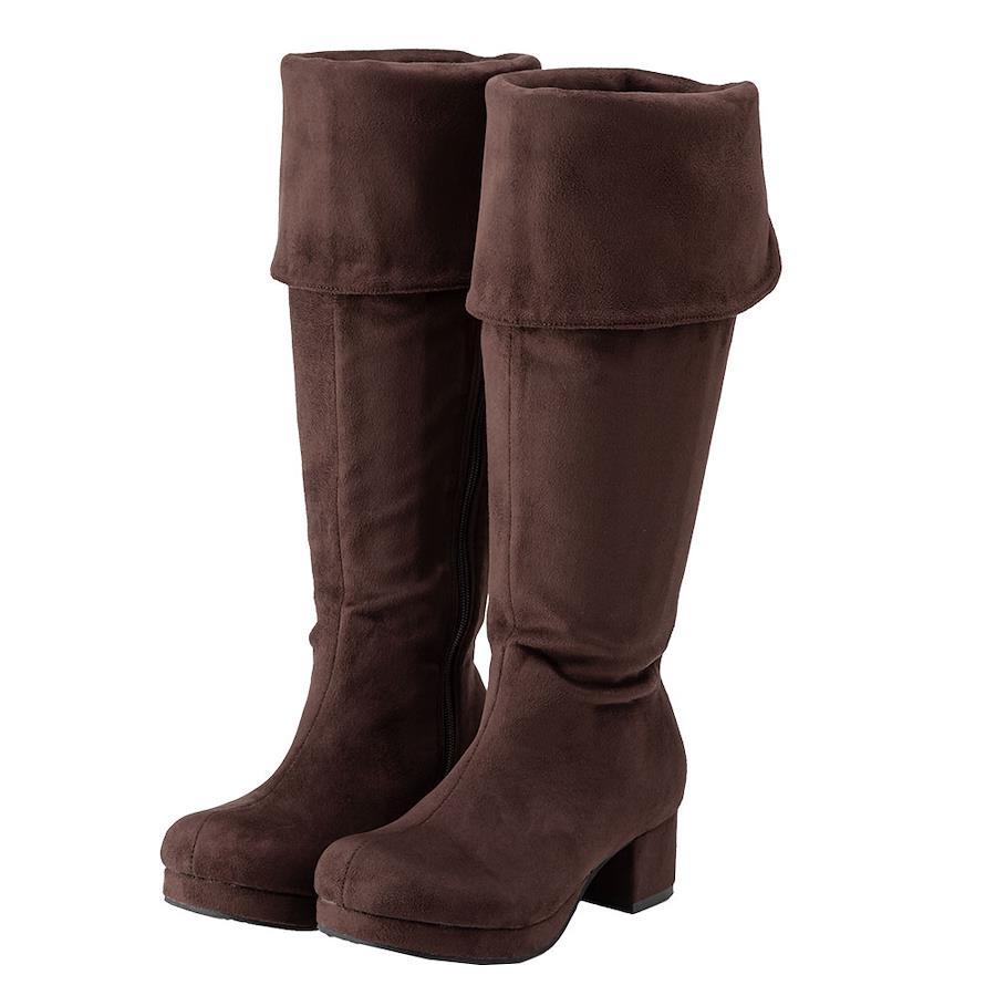 プラスサイズの救世主!幅広ゆったりのロングブーツが登場♪【デザイン】こちらの商品は、大きめサイズの2WAYロングブーツです。ニーハイにしたり、折り曲げてロングブーツにして履いていただけます。こだわりポイントも盛りだくさん♪筒の巾もノーマルタイプとゆったりタイプで選べます。サイズ表を参考にしてください。【素材】伸縮性のあるスエード素材を使用しています。すっぽり履けて、内側のファスナーを閉めるだけ♪【コーディネート】王道ブラックと、チョコレートカラーがトレンド感のあるブラウンをご用意しました。どちらの色も足元を引き締めてくれる濃い目のカラーで、いそいそなコーデに合わせていただきやすいです♪《生産国》中国