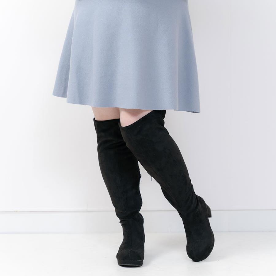 プラスサイズの救世主!幅広ゆったりのロングブーツが登場♪【デザイン】こちらの商品は、大きめサイズの2WAYロングブーツです。ニーハイにしたり、折り曲げてロングブーツにして履いていただけます。こだわりポイントも盛りだくさん♪筒の巾もノーマルタイプとゆったりタイプで選べます。サイズ表を参考にしてください。【素材】伸縮性のあるスエード素材を使用しています。すっぽり履けて、内側のファスナーを閉めるだけ♪【コーディネート】王道ブラックと、チョコレートカラーがトレンド感のあるブラウンをご用意しました。どちらの色も足元を引き締めてくれる濃い目のカラーで、いそいそなコーデに合わせていただきやすいです♪《生産国》中国