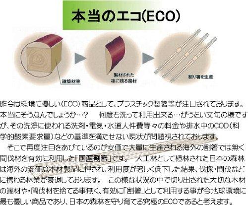 *国産杉の端材および間伐材を利用して割り箸を製造しております。 *杉の割り箸は軽く、香りがあり適度な強度もある高級感のあるお箸です。