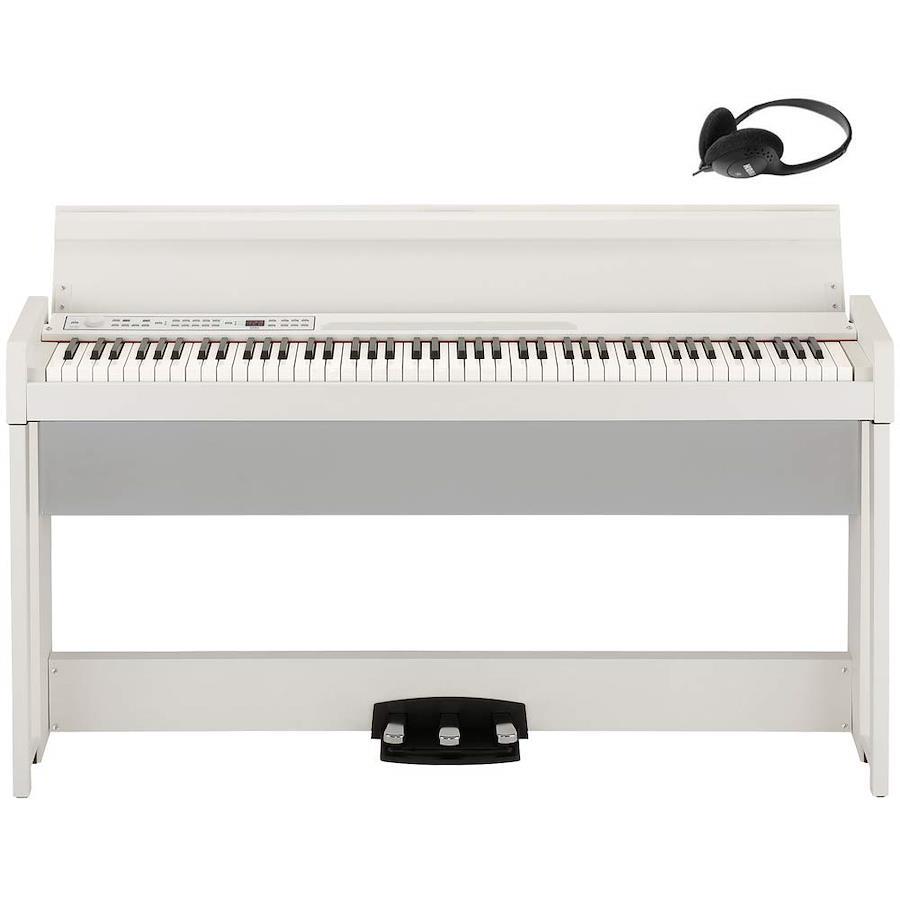 心地よいタッチの鍵盤に加え、30種類の高品位サウンド、 Bluetoothオーディオ、大迫力のスピーカーなど、ピアノをより楽しむための機能も充実。KORG C1 Airは、電子ピアノの新しいスタンダード・モデルです。・鍵盤:88鍵(A0 ? C8)リアル・ウェイテッド・ハンマー・アクション3(RH3)鍵盤・音色:30音色(10 x 3バンク)・デモソング:50曲(音色デモ・ソング x10、 ピアノ・ソング x40)・最大同時発音数:120音・レコーダー(演奏記録機能):2パート、最大14,000音・出力端子:ヘッドホン ×2(ステレオ・ミニ端子)、LINE OUT(ステレオ・ミニ端子)・MIDI端子:IN、OUT・無線方式:Bluetooth(A2DP Sink)・外形寸法:1,346(W)x 347(D)x 926(H)mm(キー・カバーを開けた状態)・重量:35kg(専用スタンド込み)・スピーカー:10cm ×2・アンプ出力:25w x2・電源:DC 24V・消費電力:18W・付属品:ACアダプター、ヘッドホン、一体型専用スタンド Bluetoothオーディオに対応。C1 Airを迫力のあるスピーカーとして使用可能。 グランド・ピアノのタッチを再現した、ウェイテッド・ハンマー・アクション鍵盤採用。 ハーフ・ペダルにも対応、3本ペダルを標準装備。 アコースティック・ピアノを中心に、高品位な30種類のサウンドを内蔵。 信頼の日本製。プレミアム・ジャパン・クオリティ。