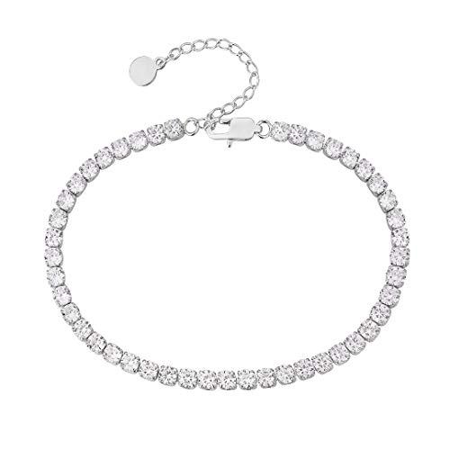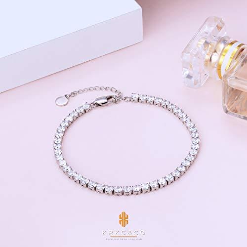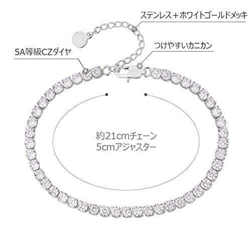 【足首のアクセントに】幅4mmの大粒ジルコニアストーンを贅沢に配置したラグジュアリーなテニスアンクレットです。日差しを受けて輝きを増したCZダイヤが足首に透明感を生み出して、夏のおしゃれを涼やかに彩ります。【しっかりした作り】地金は上質なステンレスを採用。硬度が高く、キズが入りにくいので長期使用でも美しい光沢を放ち続けます。アレルギー性の極めて低いステンレス製なので、お肌の敏感な方でも比較的安心してお使い頂けます。【サイズ調節可能】アジャスター仕様で長さは21cmから26cm程度まで自由に調整出来ます。ゆったりと身に着けるならブレスレットとしても使えるので、1つで2役をこなしてくれます。サイズがわからない方へのギフトやプレゼントにも最適です。【使いやすさ抜群】チェーンの接合部には、着脱が楽なカニカンを使用しています。通常の引き輪よりつけやすいし、簡単に外れないです。良質なメッキを施したのでサビによる変色や黒ずみを防いで常に美しさを保ちます。【落ち着いた大人感】程よい華奢さと、ボリューム感が大人っぽくて、春夏のスタイリングのアクセントとして活躍してくれること間違いなし!デイリーにはもちろん、ドレスアップスタイルにもオススメです。