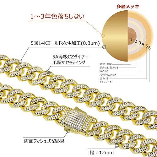 【存在感抜群のチェーン】B系アクセの人気デザイン、マイアミキューバンリンクのチェーンネックレス。表面には数千粒のCZダイヤ(ジルコニア)を散りばめており、光の当たり具合により輝きが魅力的に変化します。胸元でラグジュアリーかつ圧倒的な存在感を発揮します。
