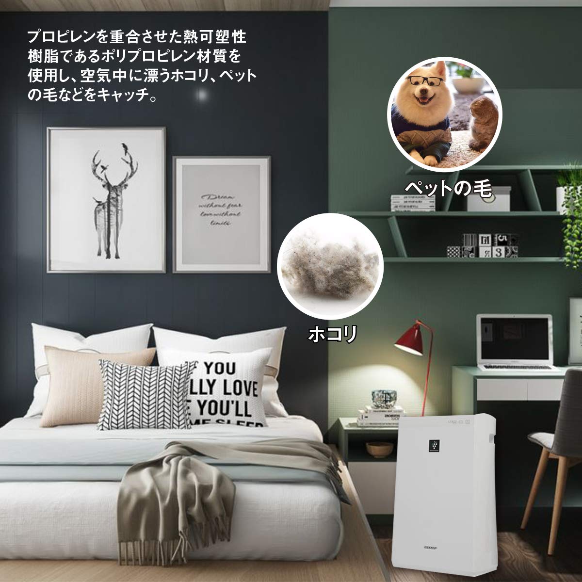 梱包物:使い捨てフィルター【FZ-PF70K1】(6枚入り)、マジックテープ(10枚入り)、取扱説明書(1部)。交換の目安:約1カ月(使用環境によって交換時期に差が出ます)1回。捕まりもの:空気中に漂うホコリ、ペットの毛、タバコのヤニなど。適用機種:シャープ空気清浄機(一部の抜粋)KC-40P1、KC-450Y3、KC-45Y2、KC-500Y4、KC-500Y5、KC-50E8、KC-50E9、KC-650Y3、KC-65E5、KC-65E6、KC-65E7、KC-65Y2、KC-700Y4、KC-700Y5、KC-70E8、KC-70E9、KC-A40、KC-A50、KC-A70、KC-B40、KC-B50、KC-B70、KC-C100、KC-C70、KC-W45、KC-W45Y、KC-W65、KC-Y45、KC-Y65、KC-Z40、KC-Z45、KC-Z65、KI-AX70、KI-BX50、KI-BX70、KI-DX50、KI-DX70、KI-EX55、KI-FX55など。