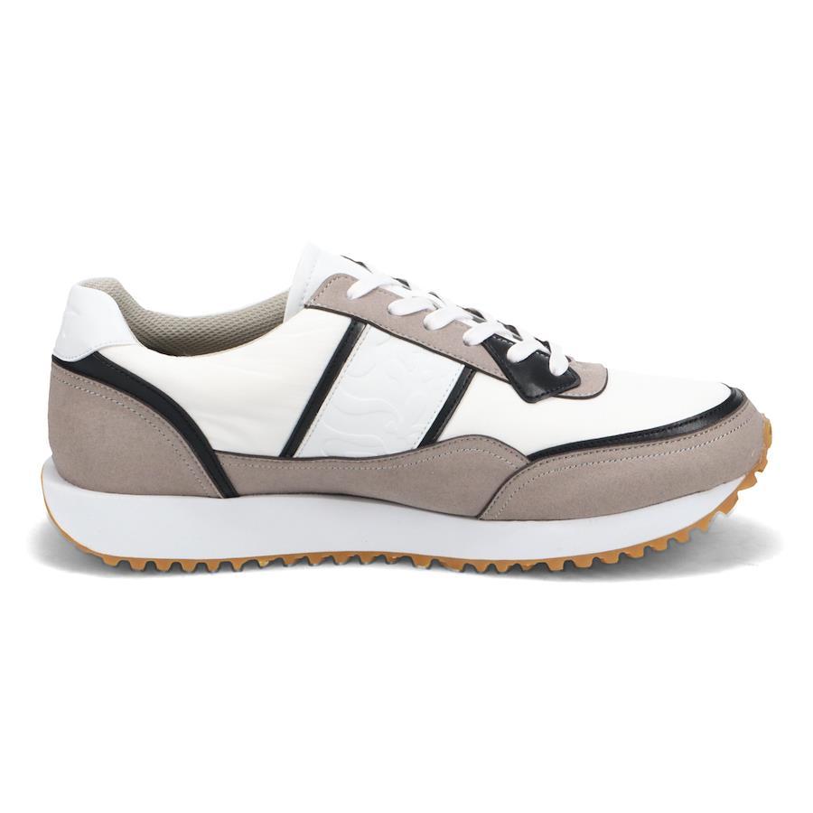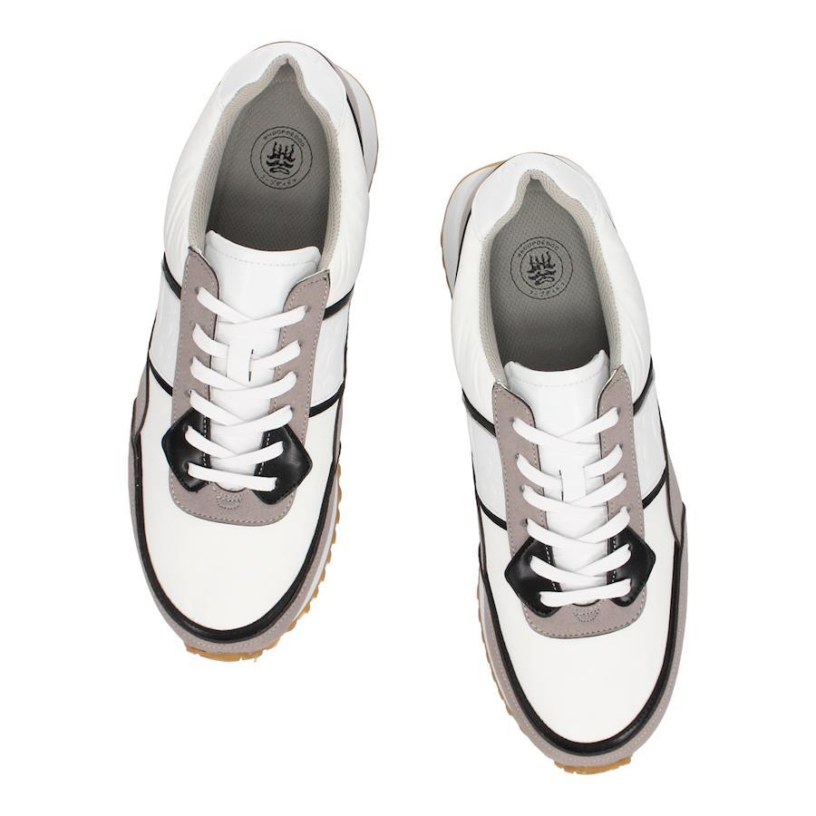 | 隈取ロゴスニーカー 【素材】 撥水機能のある生地とPU素材を使用。 【デザイン】 ジョギングシューズをもとにwhoop-de-dooながらのカラーリングと遊び心を加え構築したジョグタイプスニーカー。サイドには顔を覗かせる隈取ロゴの型押しと踵パーツの創業年である1987をデザインし、ブランドを最大限に押し出しました。 スタイルの主役になるようなスニーカーは着用するだけで目を引くこと間違いなし。軽量のEVAと凹凸の効いたラバーを組み合わせたアウトソールで足運びも軽快に。 【サイズ】 普段革靴で25.5cm、ライニングやインソールにクッションが入っているスポーツ系スニーカーで26.5〜27.0cmを使用するスタッフで<42/26.0cm>がちょうどよかったです。大きいサイズにつきましてはスポーツ系スニーカーで29.0~29.5cmを使用するスタッフで〈46/28.0cm〉がちょうどよかったです。当モデルは1cm刻みのサイズ展開になります。 ※サイズ感は、個人差がございますのであくまで参考程度にお考え下さい。 ■ブランド:フープディドゥ ■カラー:ダークブラウン/ネイビー、ライトグレー/ホワイト、ネイビー/ライトグレー ■アッパー素材:生地/人工皮革 ■底材:合成ラバー ■ソール:約2.3cm ■ヒール:約3.3cm ■重さ(片足)約:331g ■製法:セメント製法 ■中国製 *上記は全て25.5cmで計測した数値です。 *多少の誤差が生じる場合がございますので予めご了承下さい。 whoop de doo co.,ltd whoop'-de-doo' フープディドゥ |