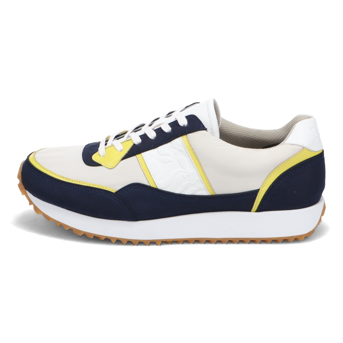 | 隈取ロゴスニーカー 【素材】 撥水機能のある生地とPU素材を使用。 【デザイン】 ジョギングシューズをもとにwhoop-de-dooながらのカラーリングと遊び心を加え構築したジョグタイプスニーカー。サイドには顔を覗かせる隈取ロゴの型押しと踵パーツの創業年である1987をデザインし、ブランドを最大限に押し出しました。 スタイルの主役になるようなスニーカーは着用するだけで目を引くこと間違いなし。軽量のEVAと凹凸の効いたラバーを組み合わせたアウトソールで足運びも軽快に。 【サイズ】 普段革靴で25.5cm、ライニングやインソールにクッションが入っているスポーツ系スニーカーで26.5〜27.0cmを使用するスタッフで<42/26.0cm>がちょうどよかったです。大きいサイズにつきましてはスポーツ系スニーカーで29.0~29.5cmを使用するスタッフで〈46/28.0cm〉がちょうどよかったです。当モデルは1cm刻みのサイズ展開になります。 ※サイズ感は、個人差がございますのであくまで参考程度にお考え下さい。 ■ブランド:フープディドゥ ■カラー:ダークブラウン/ネイビー、ライトグレー/ホワイト、ネイビー/ライトグレー ■アッパー素材:生地/人工皮革 ■底材:合成ラバー ■ソール:約2.3cm ■ヒール:約3.3cm ■重さ(片足)約:331g ■製法:セメント製法 ■中国製 *上記は全て25.5cmで計測した数値です。 *多少の誤差が生じる場合がございますので予めご了承下さい。 whoop de doo co.,ltd whoop'-de-doo' フープディドゥ |