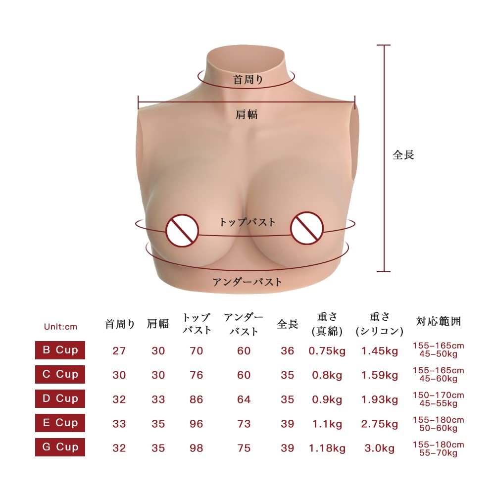 【プロ】KUMIHOは専門のシリコン製品 ブランドとして、自分の工場を持っています。すべて実物を採用して撮影するので、一番リアルな質感をあらわれます。高品質の商品とサービスをを提供続けいたします。 【デザイン改良】厚みが約2mmのデザインで、脱着便利し、体にぴったりフィットするので、肌触りを最適化できます。ネックライン下移となり、鎖骨と喉仏の真ん中にある、鎖骨ラインを保留しながら、首の?め付け感と夏の暑苦しさを緩和できる、秘密性と快適性を兼ね備えています。 【日本人向けのサイズ】同類製品は基本的に国際サイズを採用されまして、日本の方にとって、大きく過ぎの問題がありましたので、KUMIHOは今回日本人の体型に合うように、アジア向けのサイズを改良しました。 【揺れる】揺れる流体シリコンを充填されます、たゆんたゆんに揺れる感じは本物と相違ない、柔らかな揉み心地、滑らかな触り心地と指が沈む感じはリアルで、満足させる。 【実感】高級シリコン材質で作り上げ、無毒、無臭なので安心安全の製品です。最新のオイルサプレッション技術を応用し、同類製品の油発生問題も解決しました。リアルな女性のような乳房の手触り、本物と同じです。着るとゴージャスな女に変身で、女性の魅力にあふれて、優雅にもう一人の自分になります。