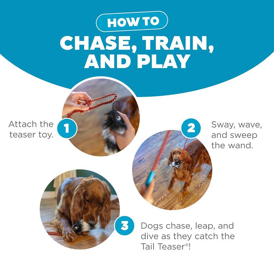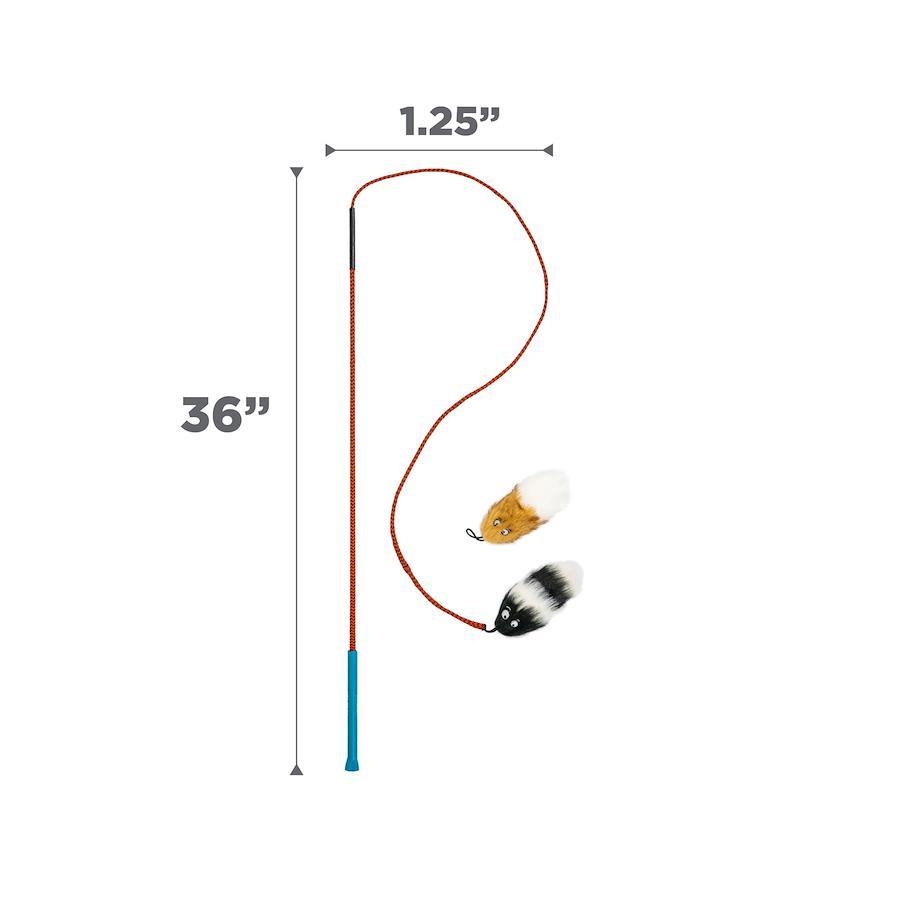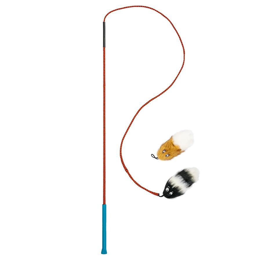 しなやかで丈夫な竿(ポール)とナイロンロープで元気な愛犬と活動的な遊びができる、革新的なおもちゃです。すべりにくく持ちやすい持ち手、おもちゃとの接合部は強力ゴムで補強されています。107cmの長~い丈夫な竿と、ワンちゃんが夢中になる18cmのふわふわで笛入りのおもちゃ2個のセットです。室内でも屋外でも、超元気な子でもお年寄り犬でも、強度を変えて何時間もエクササイズさせることができます。飼い主さんが疲れることなく、楽しい活動的な遊びがいつでも可能になります。