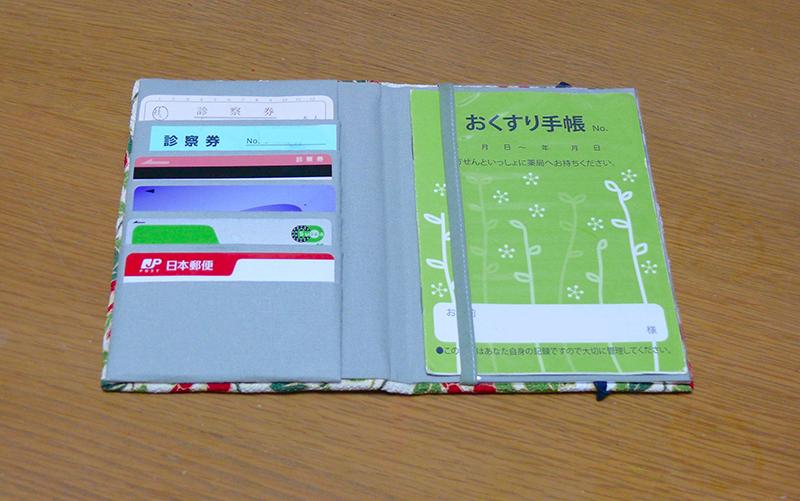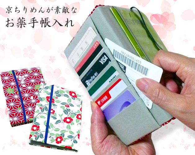 ★京ちりめんが素敵なお薬手帳入れ!*診察券などカードが6枚収納出来ます。*お薬手帳も収納出来、通院時に困りません。*ゴム紐が付いているので、中の物が飛び出す心配はありません。*和柄が素敵です。