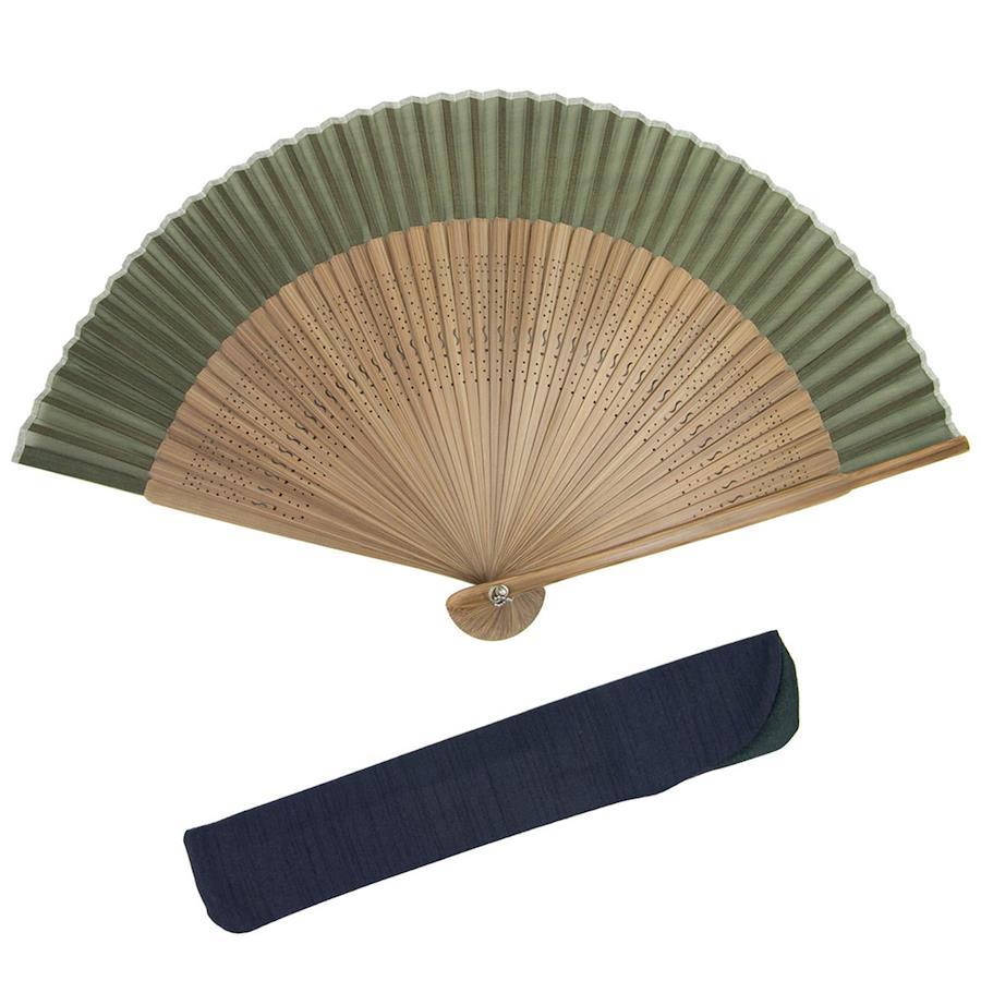 [KYOETSU] [キョウエツ] 扇子 正絹 無地 茶骨 2点セット(扇子、扇子袋) メンズ (茶骨4)