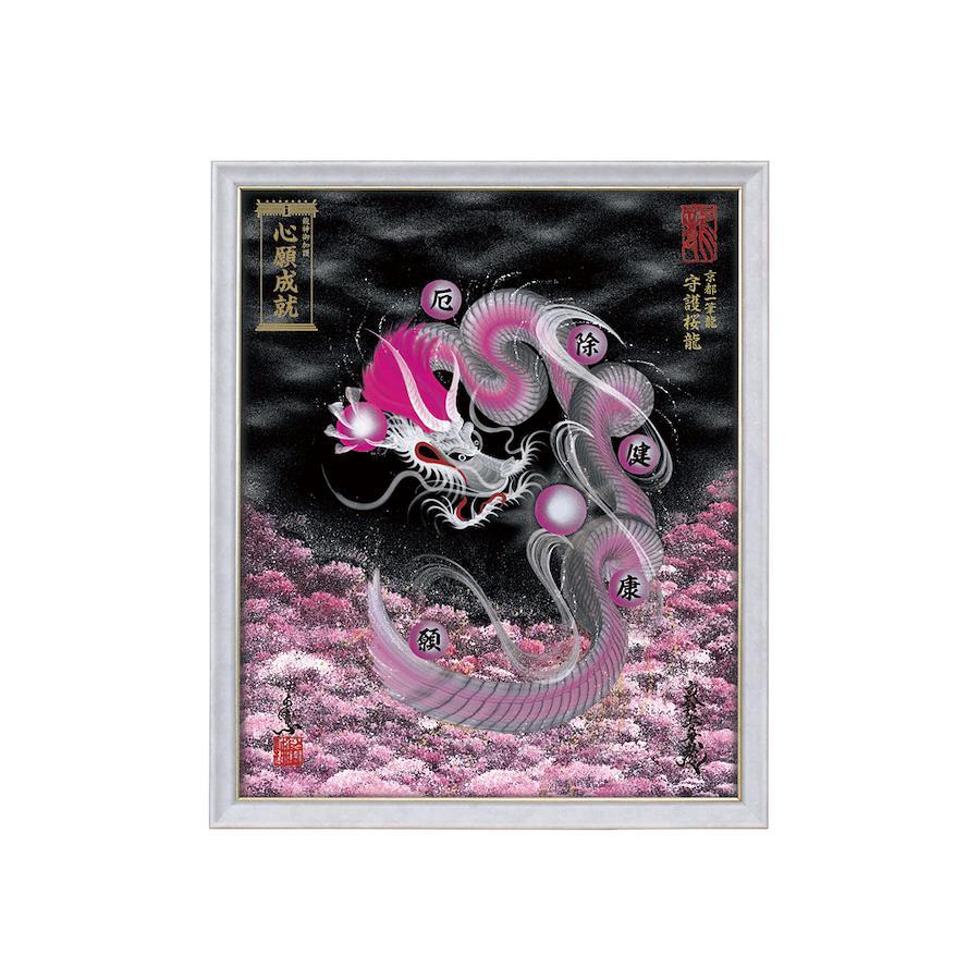 【商品の特徴】・京都一筆龍描画の種類/色彩は【26種】よりお選びいただけます<昇運龍14種(双龍5種/1体龍9種)> <守護龍10種(双龍2種/1体龍8種)> <縁結び龍2種(双龍2種)>・『京都一筆龍の御加護/御利益の象徴=胴体部分を一切途切れさせず一筆で描く動画』のQRコード印字ステッカー(2色/4サイズ)を同封お納めいたしております・描画に記載可能なお願い事は6種のご祈願内容より御選定いただけます心願成就/事業繁栄/金運上昇/健康祈願/家内安全/良縁成就・国内生産の高級額縁(デッサン額)を使用。額縁の色/機能は7種よりお選びいただけます。・龍の眼に光を宿し生気を吹き込む『龍の瞳(ラインストーン)』加工・京都一筆龍絵師手島啓輔署名、落款入り・御贈答のご利用も多く、懇切丁寧な包装