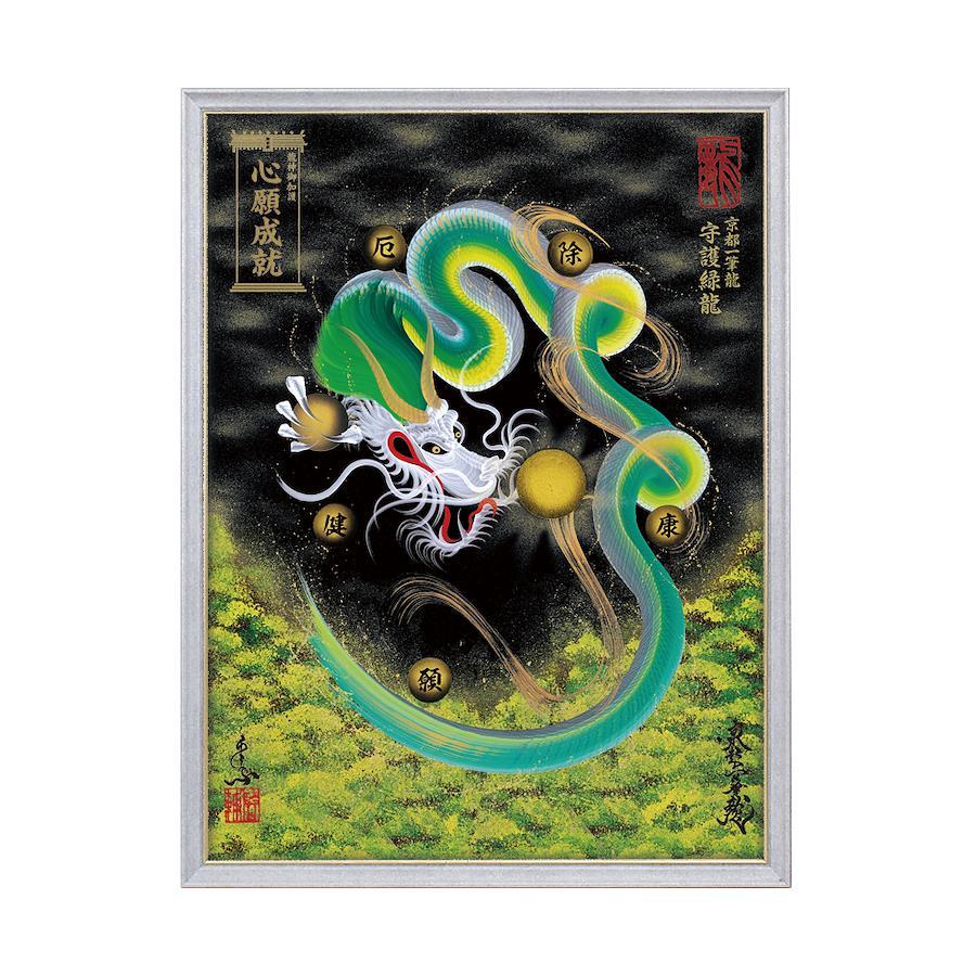 【商品の特徴】・京都一筆龍描画の種類/色彩は【26種】よりお選びいただけます<昇運龍14種(双龍5種/1体龍9種)> <守護龍10種(双龍2種/1体龍8種)> <縁結び龍2種(双龍2種)>・『京都一筆龍の御加護/御利益の象徴=胴体部分を一切途切れさせず一筆で描く動画』のQRコード印字ステッカー(2色/4サイズ)を同封お納めいたしております・描画に記載可能なお願い事は6種のご祈願内容より御選定いただけます心願成就/事業繁栄/金運上昇/健康祈願/家内安全/良縁成就・国内生産の高級額縁(デッサン額)を使用。額縁の色/機能は7種よりお選びいただけます。・龍の眼に光を宿し生気を吹き込む『龍の瞳(ラインストーン)』加工・京都一筆龍絵師手島啓輔署名、落款入り・御贈答のご利用も多く、懇切丁寧な包装