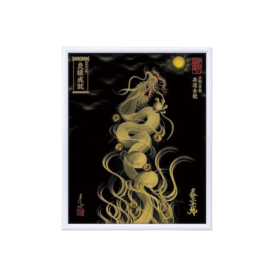 【商品の特徴】・京都一筆龍描画の種類/色彩は【26種】よりお選びいただけます<昇運龍14種(双龍5種/1体龍9種)> <守護龍10種(双龍2種/1体龍8種)> <縁結び龍2種(双龍2種)>・『京都一筆龍の御加護/御利益の象徴=胴体部分を一切途切れさせず一筆で描く動画』のQRコード印字ステッカー(2色/4サイズ)を同封お納めいたしております・描画に記載可能なお願い事は6種のご祈願内容より御選定いただけます心願成就/事業繁栄/金運上昇/健康祈願/家内安全/良縁成就・国内生産の高級額縁(デッサン額)を使用。額縁の色/機能は7種よりお選びいただけます。・龍の眼に光を宿し生気を吹き込む『龍の瞳(ラインストーン)』加工・京都一筆龍絵師手島啓輔署名、落款入り・御贈答のご利用も多く、懇切丁寧な包装