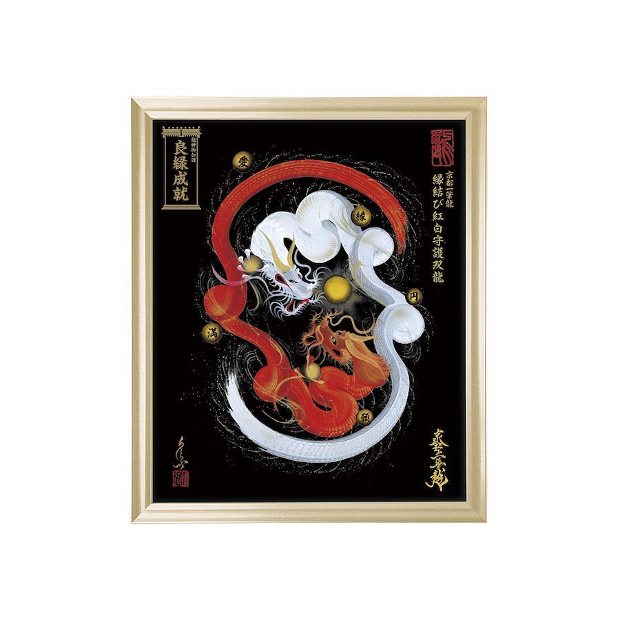 【商品の特徴】・京都一筆龍描画の種類/色彩は【26種】よりお選びいただけます<昇運龍14種(双龍5種/1体龍9種)> <守護龍10種(双龍2種/1体龍8種)> <縁結び龍2種(双龍2種)>・『京都一筆龍の御加護/御利益の象徴=胴体部分を一切途切れさせず一筆で描く動画』のQRコード印字ステッカー(2色/4サイズ)を同封お納めいたしております・描画に記載可能なお願い事は6種のご祈願内容より御選定いただけます心願成就/事業繁栄/金運上昇/健康祈願/家内安全/良縁成就・国内生産の高級額縁(デッサン額)を使用。額縁の色/機能は7種よりお選びいただけます。・龍の眼に光を宿し生気を吹き込む『龍の瞳(ラインストーン)』加工・京都一筆龍絵師手島啓輔署名、落款入り・御贈答のご利用も多く、懇切丁寧な包装