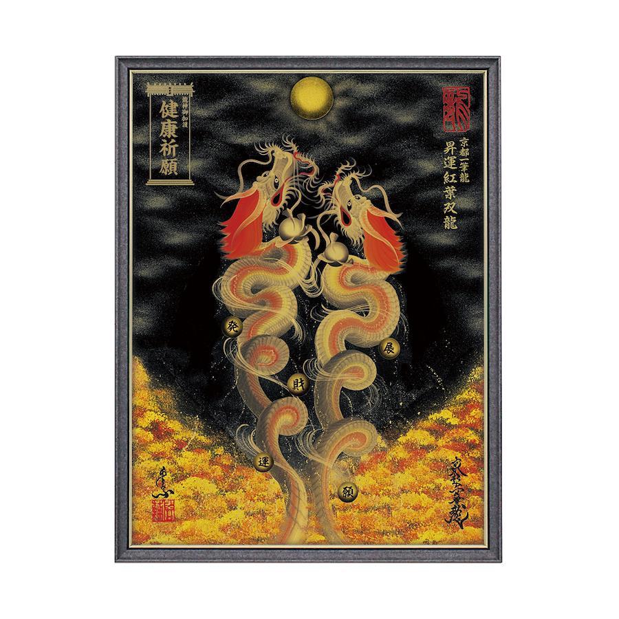【商品の特徴】・京都一筆龍描画の種類/色彩は【26種】よりお選びいただけます<昇運龍14種(双龍5種/1体龍9種)> <守護龍10種(双龍2種/1体龍8種)> <縁結び龍2種(双龍2種)>・『京都一筆龍の御加護/御利益の象徴=胴体部分を一切途切れさせず一筆で描く動画』のQRコード印字ステッカー(2色/4サイズ)を同封お納めいたしております・描画に記載可能なお願い事は6種のご祈願内容より御選定いただけます心願成就/事業繁栄/金運上昇/健康祈願/家内安全/良縁成就・国内生産の高級額縁(デッサン額)を使用。額縁の色/機能は7種よりお選びいただけます。・龍の眼に光を宿し生気を吹き込む『龍の瞳(ラインストーン)』加工・京都一筆龍絵師手島啓輔署名、落款入り・御贈答のご利用も多く、懇切丁寧な包装