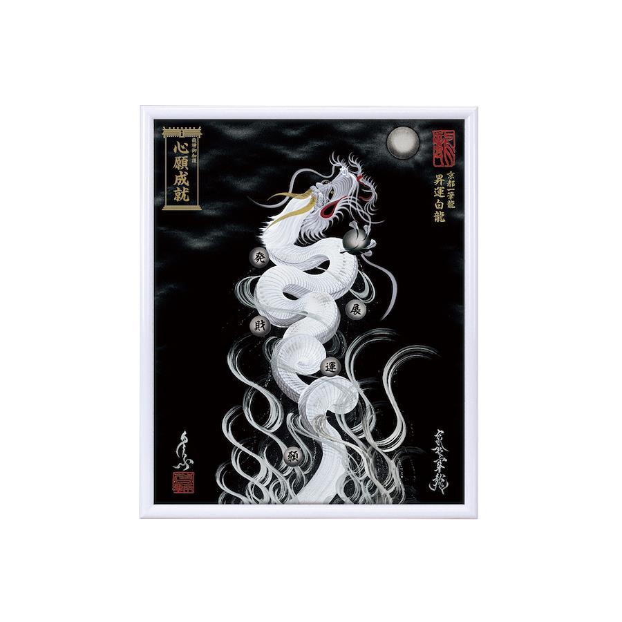 【商品の特徴】・京都一筆龍描画の種類/色彩は【26種】よりお選びいただけます<昇運龍14種(双龍5種/1体龍9種)> <守護龍10種(双龍2種/1体龍8種)> <縁結び龍2種(双龍2種)>・『京都一筆龍の御加護/御利益の象徴=胴体部分を一切途切れさせず一筆で描く動画』のQRコード印字ステッカー(2色/4サイズ)を同封お納めいたしております・描画に記載可能なお願い事は6種のご祈願内容より御選定いただけます心願成就/事業繁栄/金運上昇/健康祈願/家内安全/良縁成就・国内生産の高級額縁(デッサン額)を使用。額縁の色/機能は7種よりお選びいただけます。・龍の眼に光を宿し生気を吹き込む『龍の瞳(ラインストーン)』加工・京都一筆龍絵師手島啓輔署名、落款入り・御贈答のご利用も多く、懇切丁寧な包装