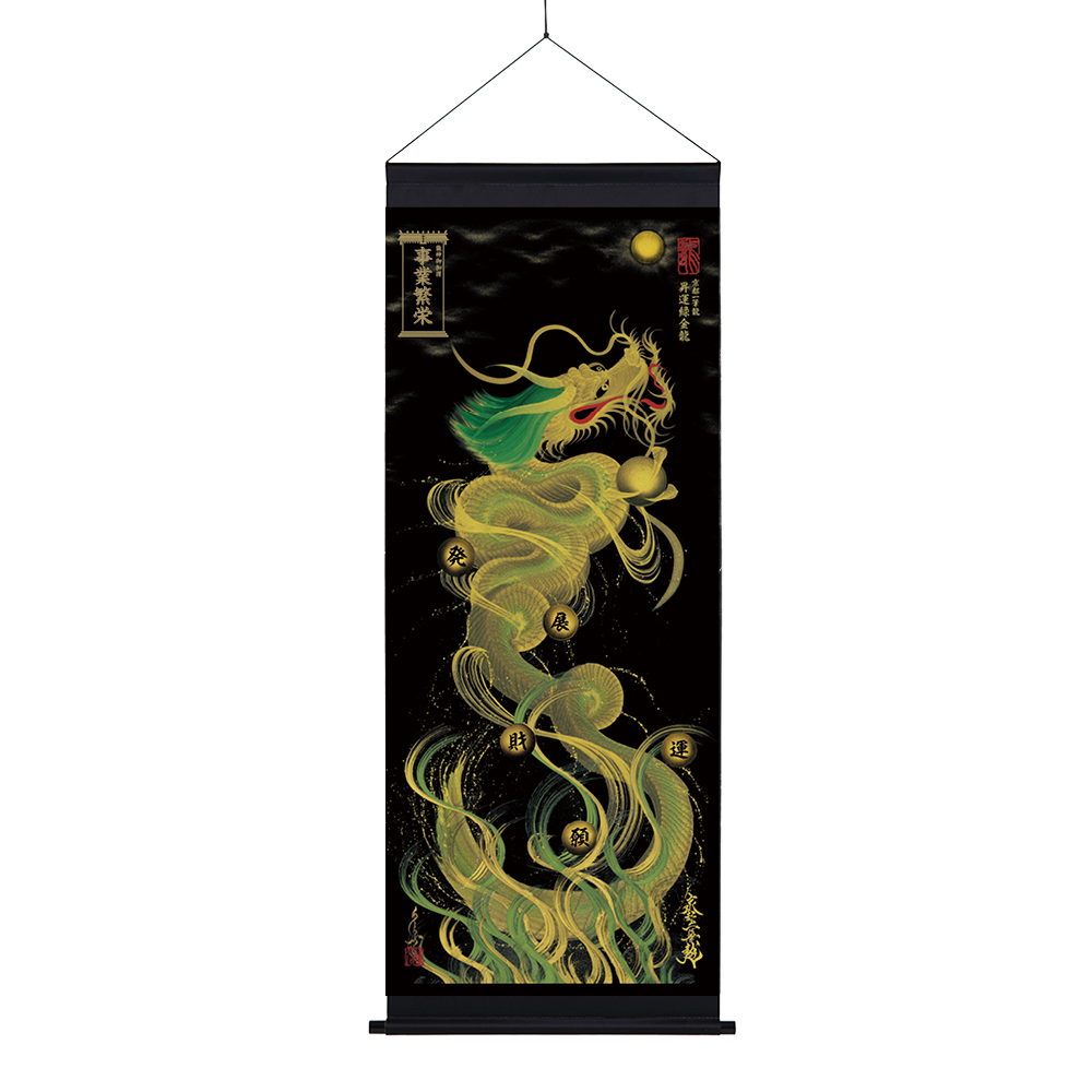 【商品の特徴】・京都一筆龍描画の種類/色彩は【26種】よりお選びいただけます<昇運龍14種(双龍5種/1体龍9種)> <守護龍10種(双龍2種/1体龍8種)> <縁結び龍2種(双龍2種)>・『京都一筆龍の御加護/御利益の象徴=胴体部分を一切途切れさせず一筆で描く動画』のQRコード印字ステッカー(2色/4サイズ)を同封お納めいたしております・描画に記載可能なお願い事は6種のご祈願内容より御選定いただけます心願成就/事業繁栄/金運上昇/健康祈願/家内安全/良縁成就・御札など添付のお祀り用マグネットを使用してお祀り(取り外し/位置変更可能)・発色が良く落ち着いた風合いの防炎スエード生地製(厚み約0.35~ ※官製郵便はがき約1.5枚程度/コピー用紙約4枚分程度)※ スエードは皮革・合成皮革ではなく専用布の名称となります。・吊り下げ用の上下軸棒付き(下部は軸先付き)※軸棒を外して飾られる場合でも、紐や止め具(画鋲、釘、ネジ等)をお使いいただけるハトメ穴付き(表面からは見えません)・丈夫で切れにくくシンプルな風合いの江戸打ち紐付き(黒/白2色)・龍の眼に光を宿し生気を吹き込む『龍の瞳(ラインストーン)』加工・京都一筆龍絵師手島啓輔署名、落款入り・御贈答のご利用も多く、懇切丁寧な包装