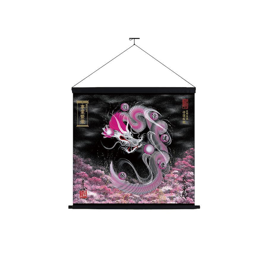 【商品の特徴】・京都一筆龍描画の種類/色彩は【26種】よりお選びいただけます<昇運龍14種(双龍5種/1体龍9種)> <守護龍10種(双龍2種/1体龍8種)> <縁結び龍2種(双龍2種)>・『京都一筆龍の御加護/御利益の象徴=胴体部分を一切途切れさせず一筆で描く動画』のQRコード印字ステッカー(2色/4サイズ)を同封お納めいたしております・描画に記載可能なお願い事は6種のご祈願内容より御選定いただけます心願成就/事業繁栄/金運上昇/健康祈願/家内安全/良縁成就・御札など添付のお祀り用マグネットを使用してお祀り(取り外し/位置変更可能)・発色が良く落ち着いた風合いの防炎スエード生地製(厚み約0.35~ ※官製郵便はがき約1.5枚程度/コピー用紙約4枚分程度)※ スエードは皮革・合成皮革ではなく専用布の名称となります。・吊り下げ用の上下軸棒付き(下部は軸先付き)※軸棒を外して飾られる場合でも、紐や止め具(画鋲、釘、ネジ等)をお使いいただけるハトメ穴付き(表面からは見えません)・丈夫で切れにくくシンプルな風合いの江戸打ち紐付き(黒/白2色)・龍の眼に光を宿し生気を吹き込む『龍の瞳(ラインストーン)』加工・京都一筆龍絵師手島啓輔署名、落款入り・御贈答のご利用も多く、懇切丁寧な包装