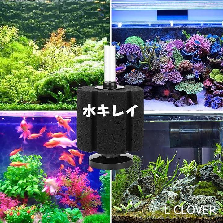 スポンジ部分から給水するので、稚魚などを吸い込む心配がなく、小型魚や小型エビの飼育はもちろん、エアレーション効果が高いため、金魚や大型魚などの飼育でもおすすめです。