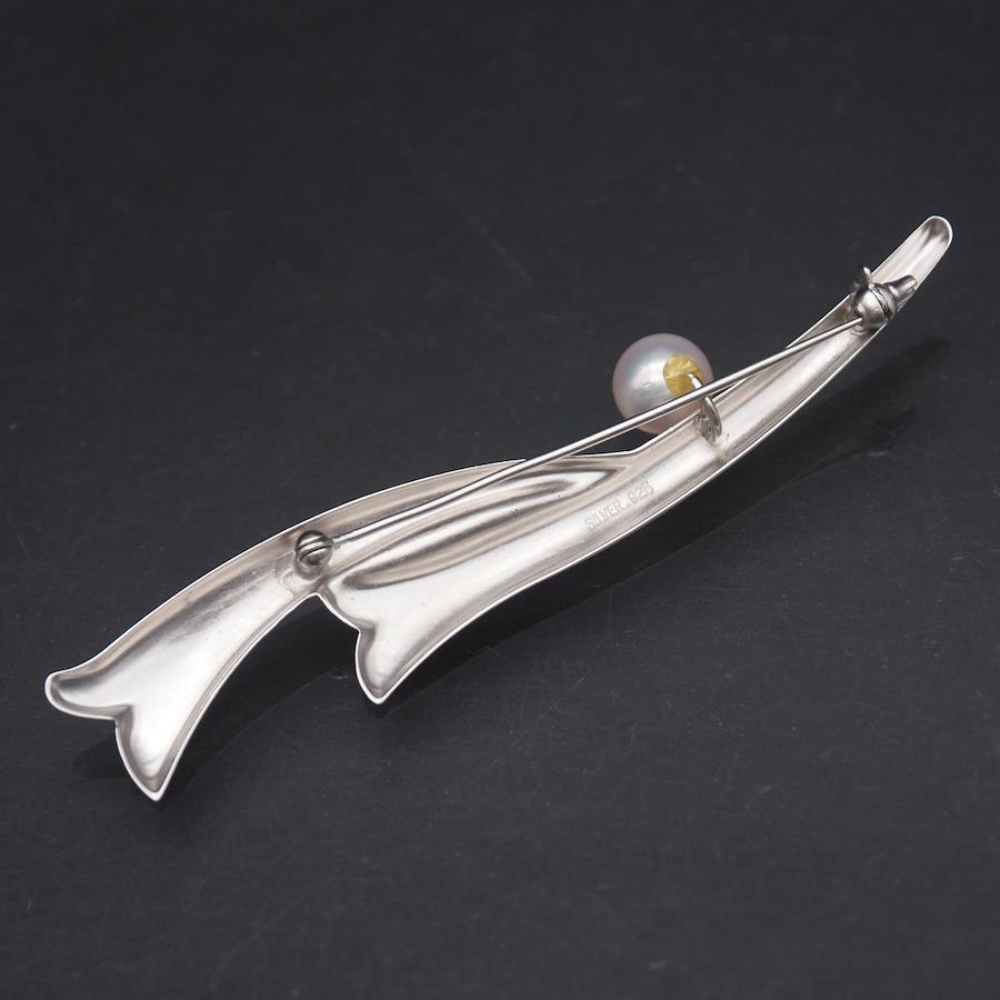 L093 Genuine 8mm Pearl, Stamped SILVER925, Brooch Design, Silver Corsage, June Birthstone