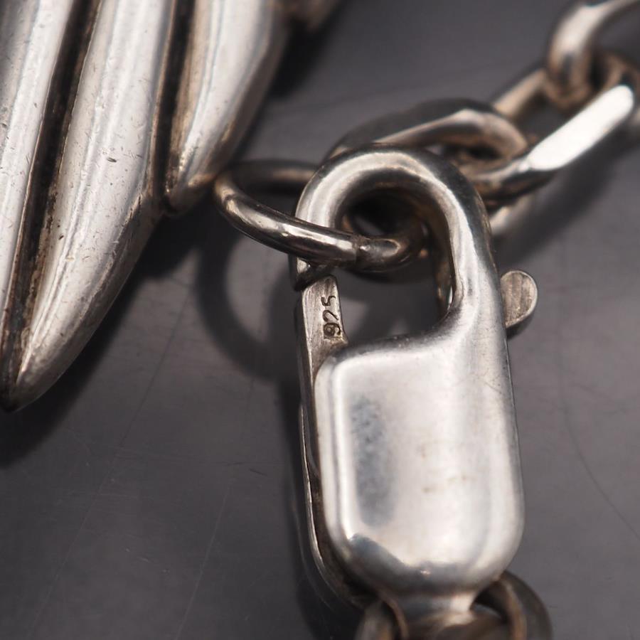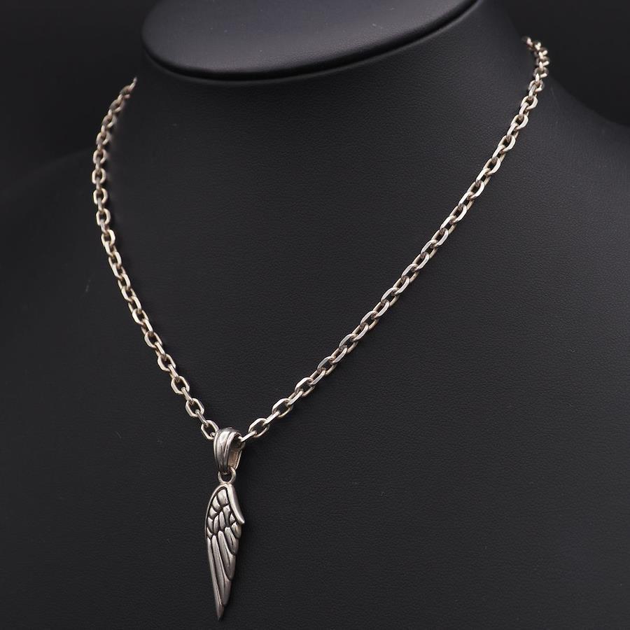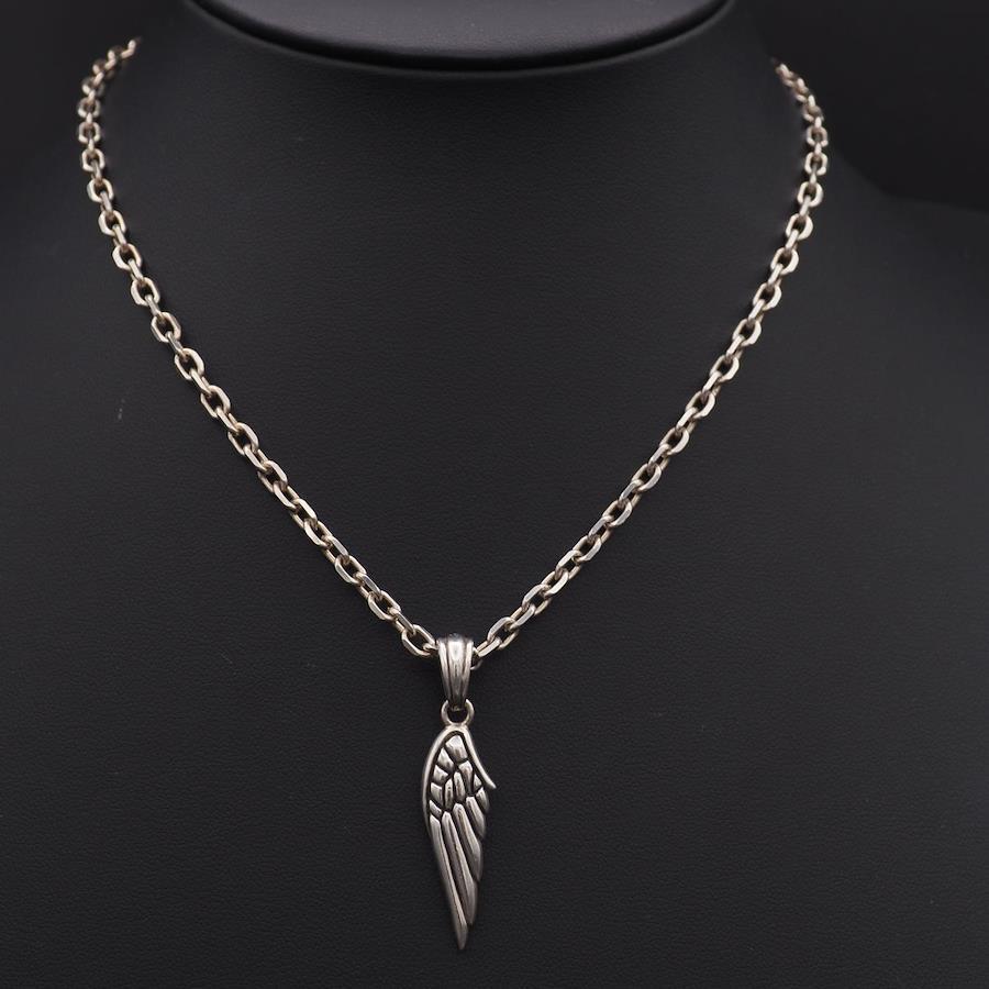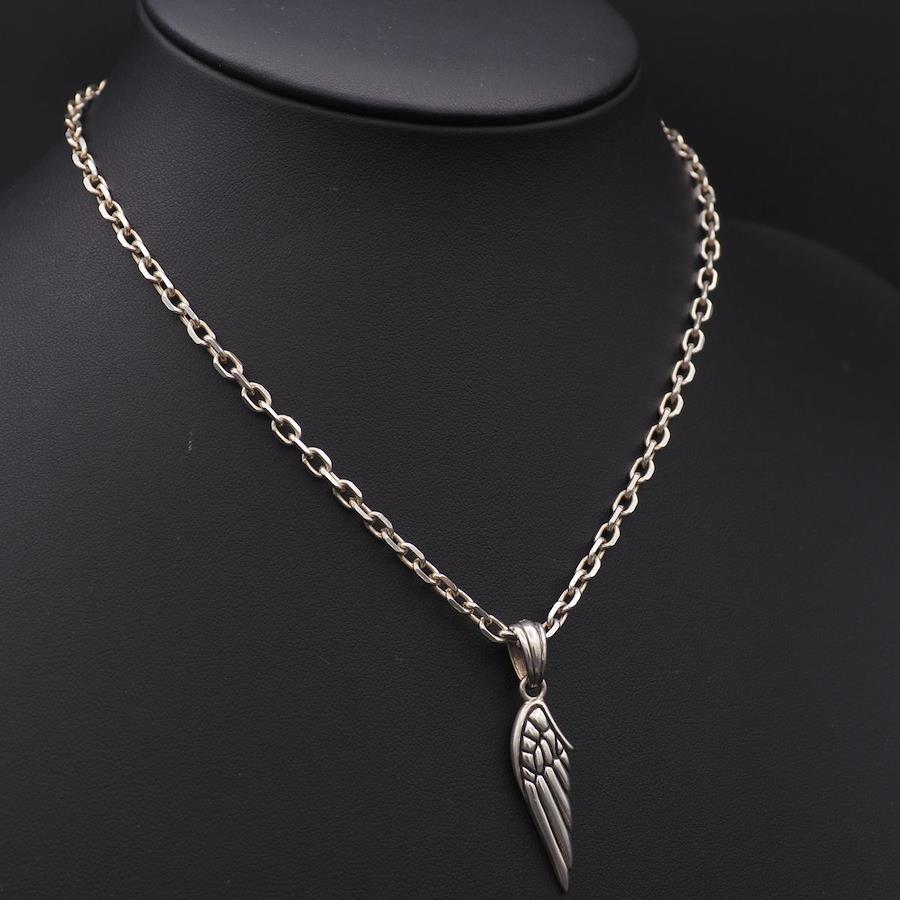 L116 Vintage 925 Stamped Pendant Necklace with Feather Design in Silver
