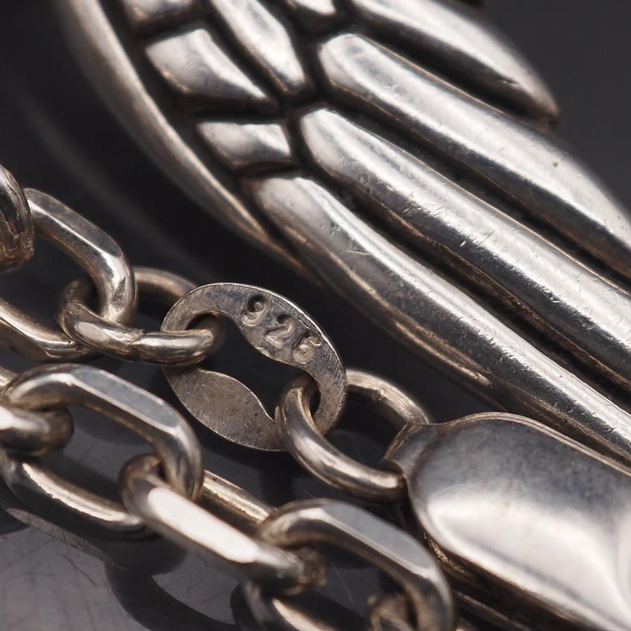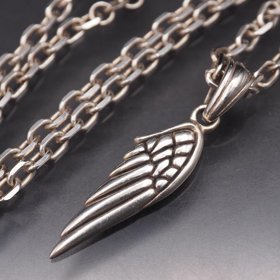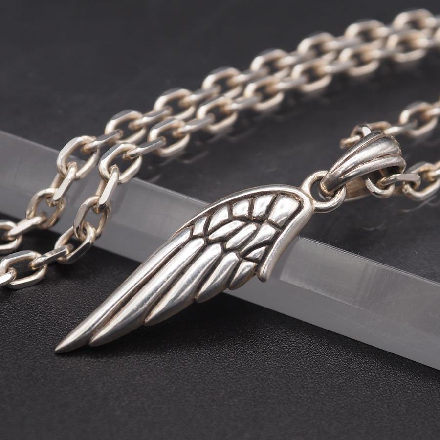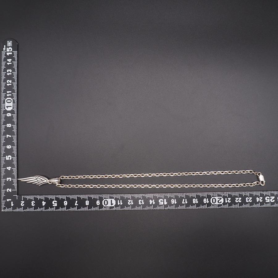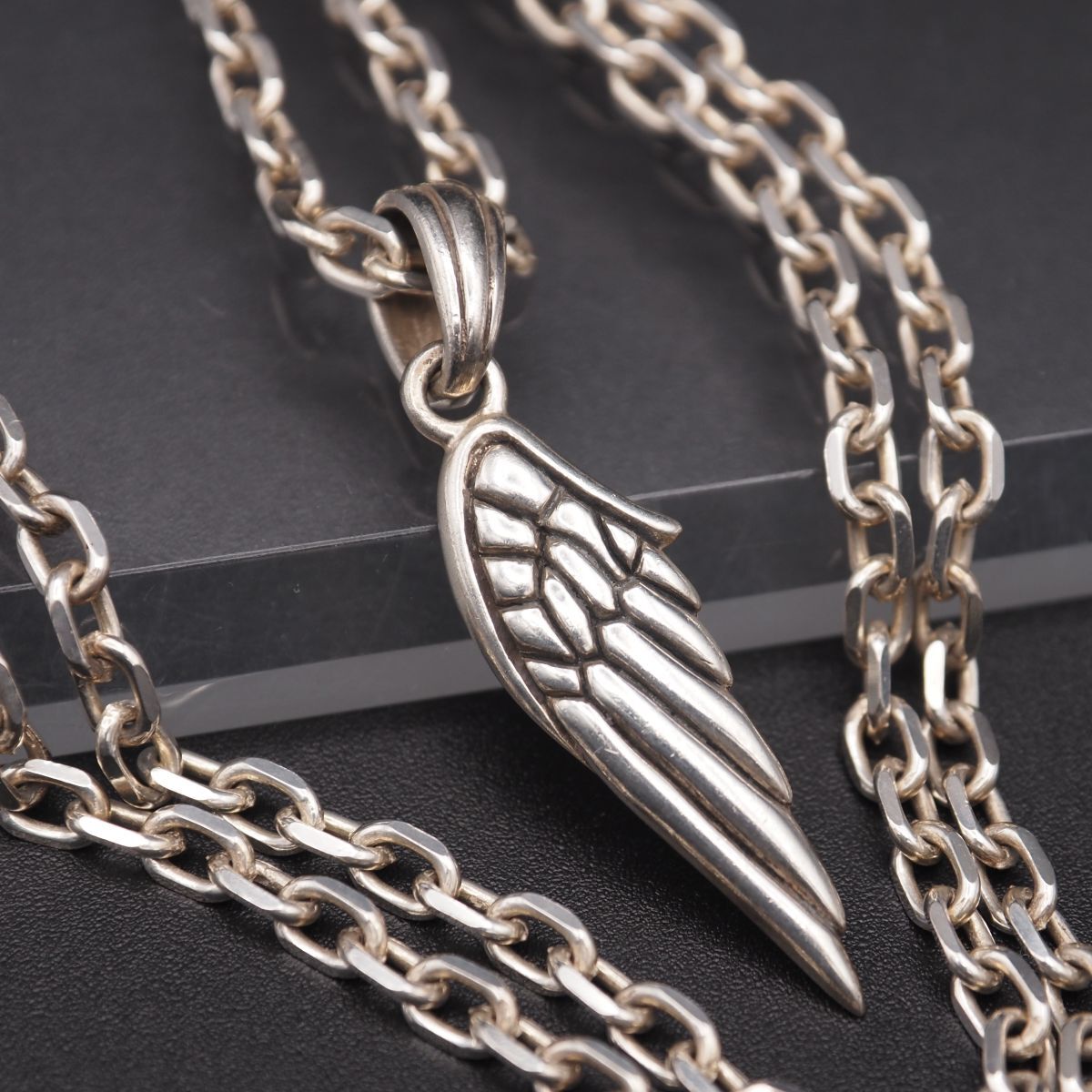 L116 Vintage 925 Stamped Pendant Necklace with Feather Design in Silver