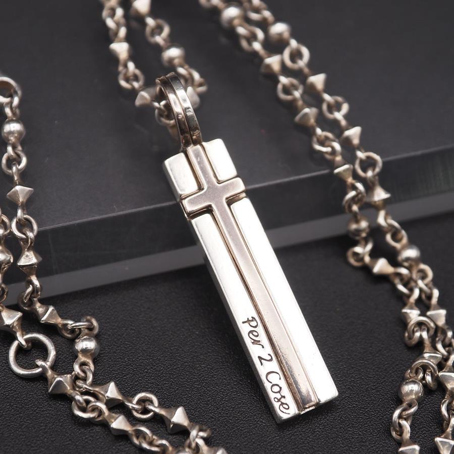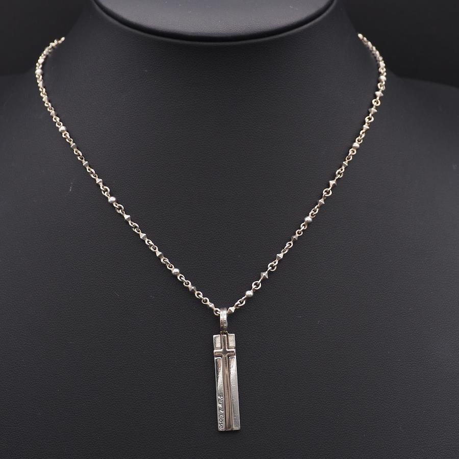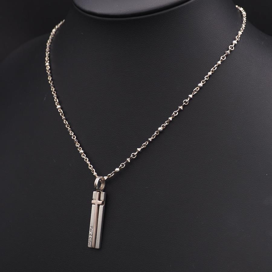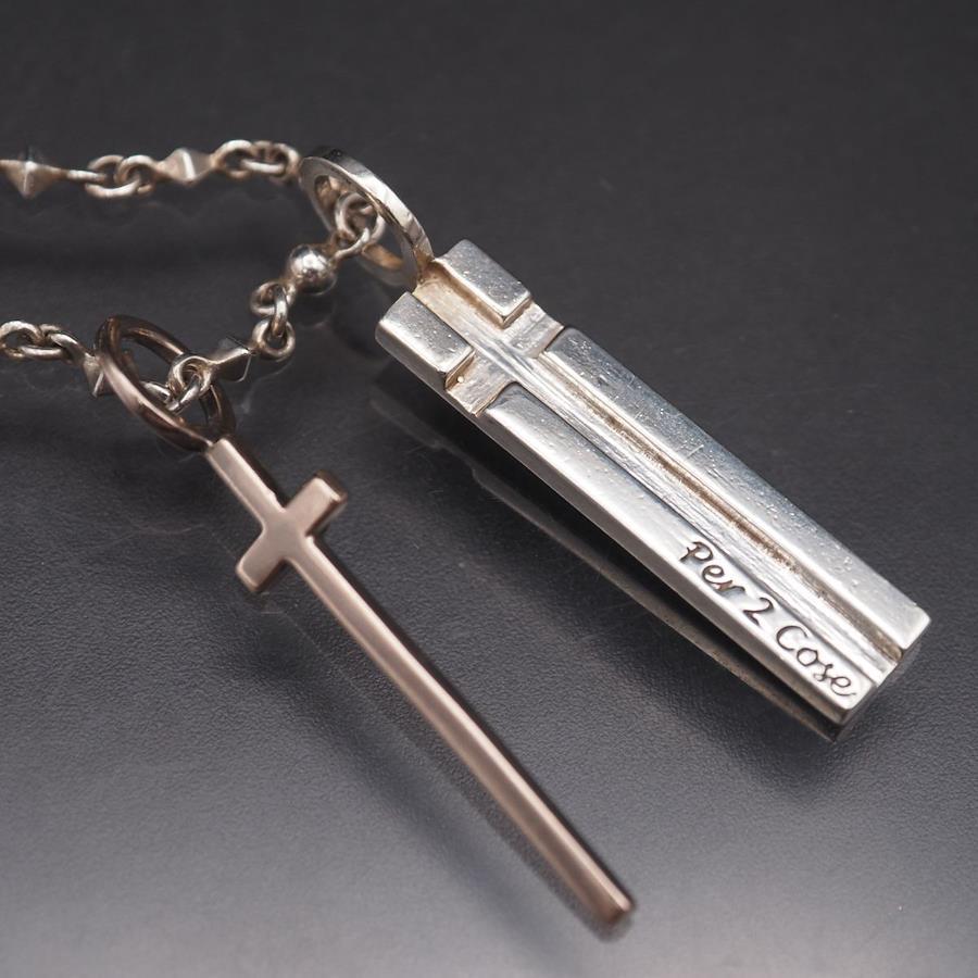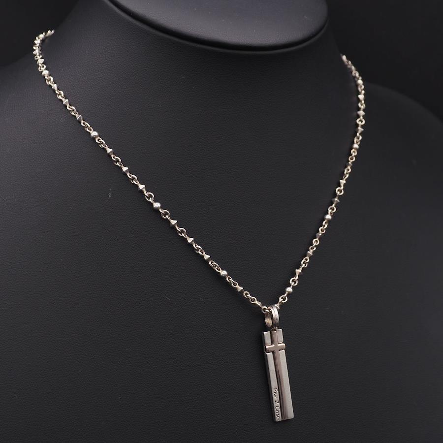 L146 Libra Britannia Pink Silver 950 Pendant Necklace with Cross Design, Stamped in 925 Silver