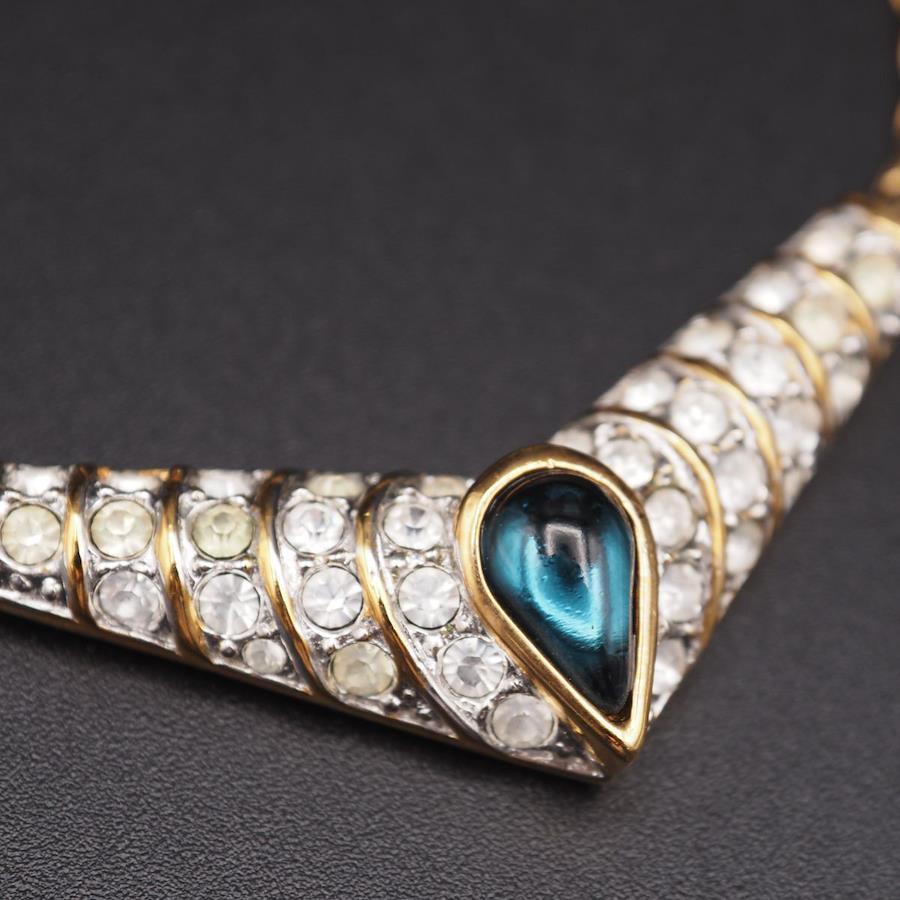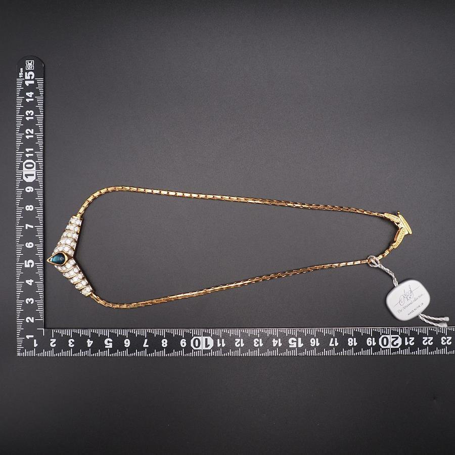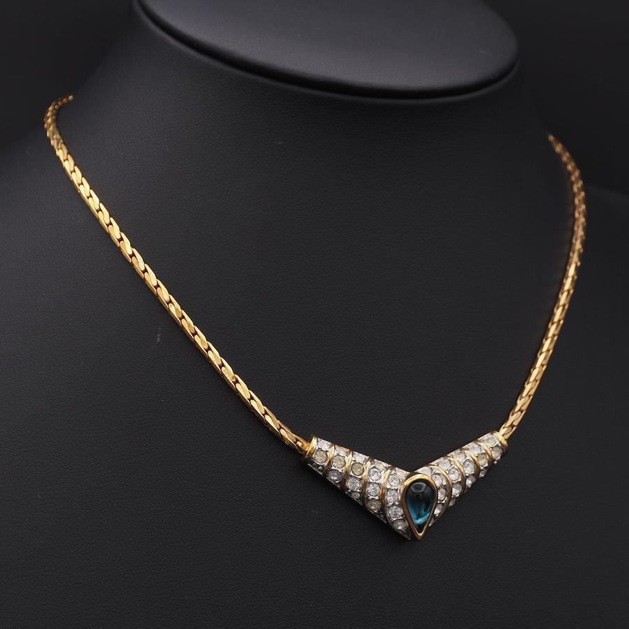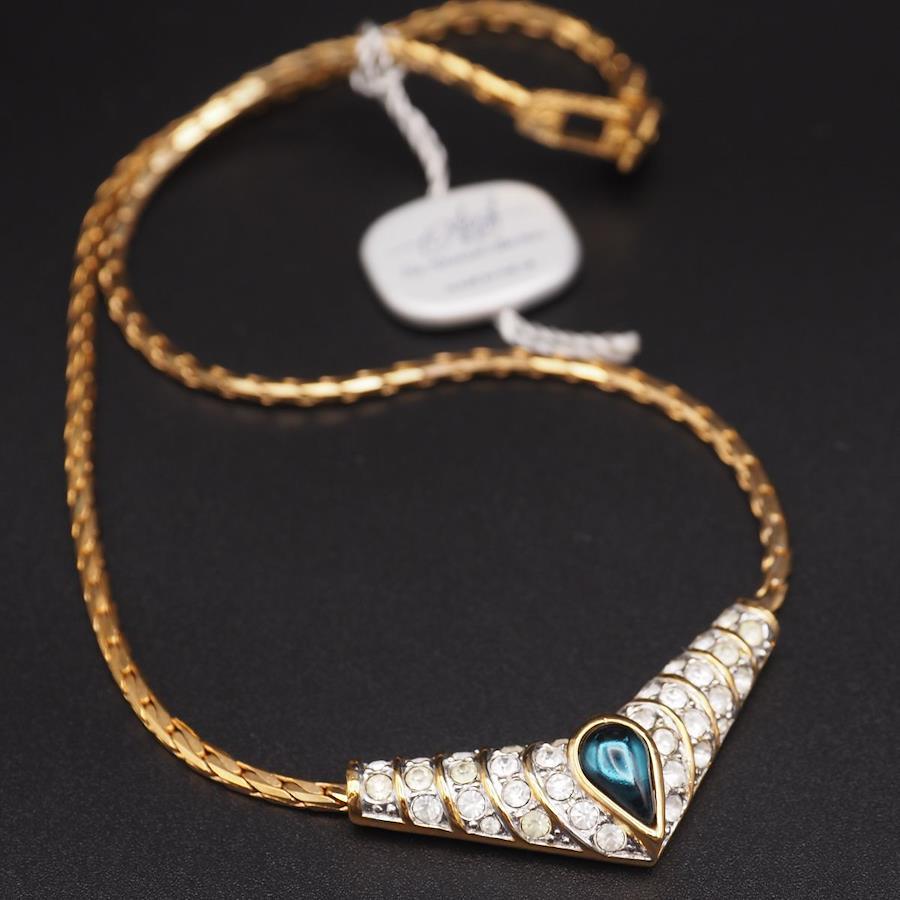 L173 A&S Attwood and Sawyer Atwood & Sawyer Necklace, Sapphire-Embellished Gold Design, Costume Jewelry