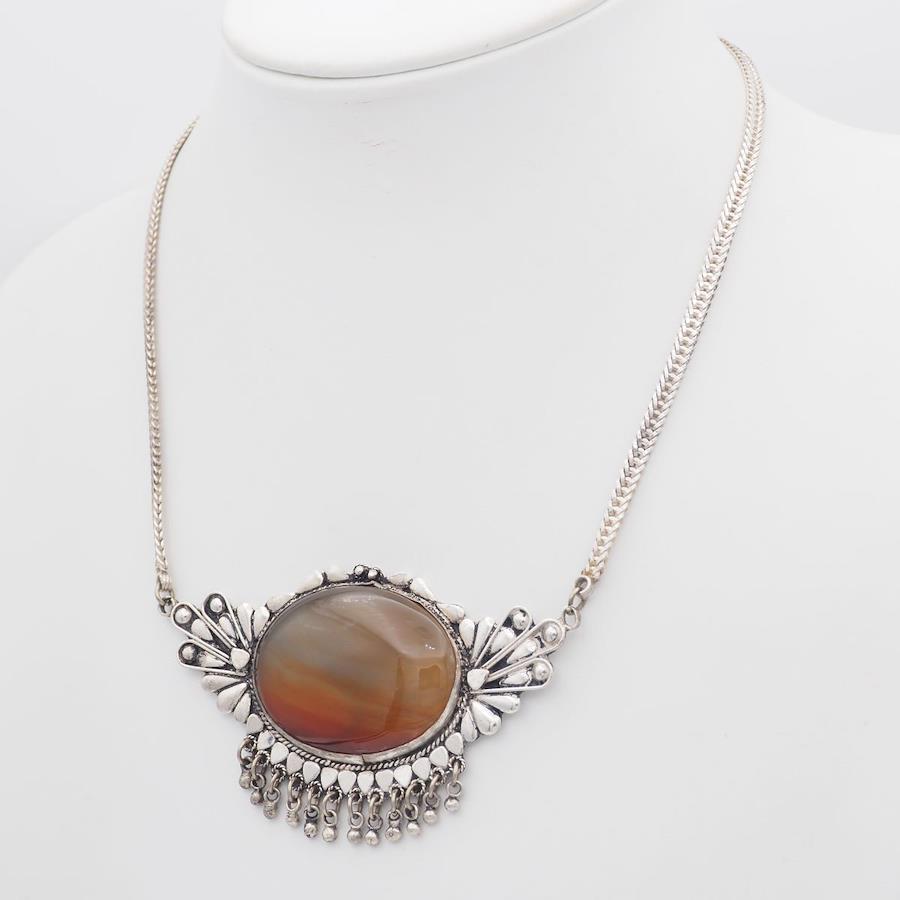 L359 Agate Necklace, Large Design, Silver, Vintage