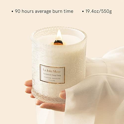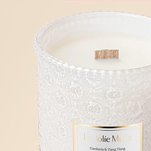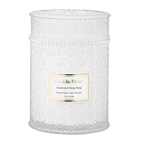 LA JOLIE MUSE Gardenia & Ylang Ylang Aroma Candle, Mother's Day Gift, Soy Candle for Home Use, Large Candle in Glass Jar for Women