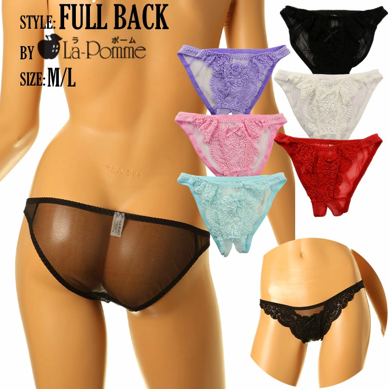華やかで軽やかな質感を持ち、柔らかな触り心地と優美な透け感が魅力的でセクシーなシースルー素材の20ハーフ生地とストレッチレースを使用したフルバックショーツになります。クロッチ部は大胆なデザインのオープンクロッチになりフロントにはポケットが付いた遊び心のあるセクシーデザインのランジェリーになります。
