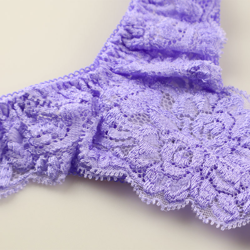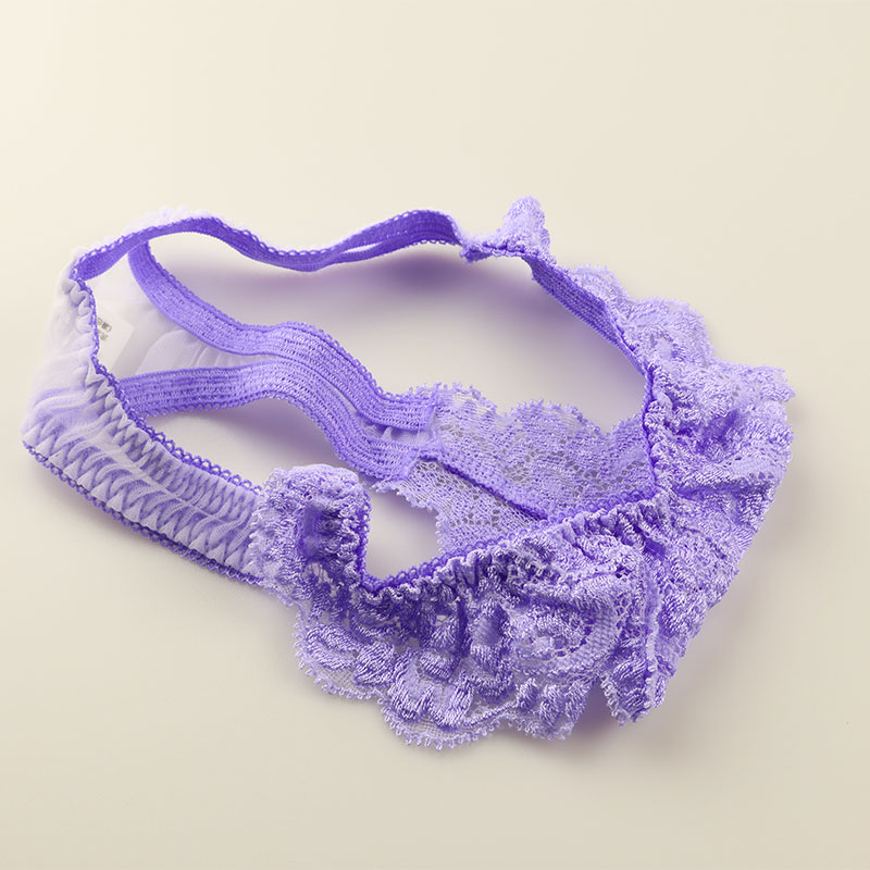 華やかで軽やかな質感を持ち、柔らかな触り心地と優美な透け感が魅力的でセクシーなシースルー素材の20ハーフ生地とストレッチレースを使用したTバックショーツになります。股上が凄く浅くなったローライズタイプの極小マイクロミニランジェリー。
