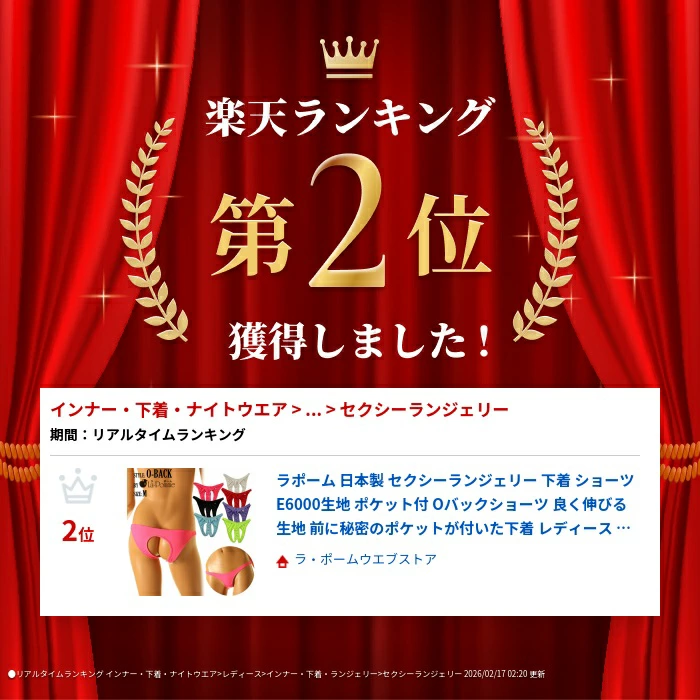 発色が良くハリがあり伸縮性に優れたさらさらとした肌触りが特徴のE6000生地を使用したOバックショーツになります。フロントに秘密のポケットが付いたセクシーランジェリーになります。