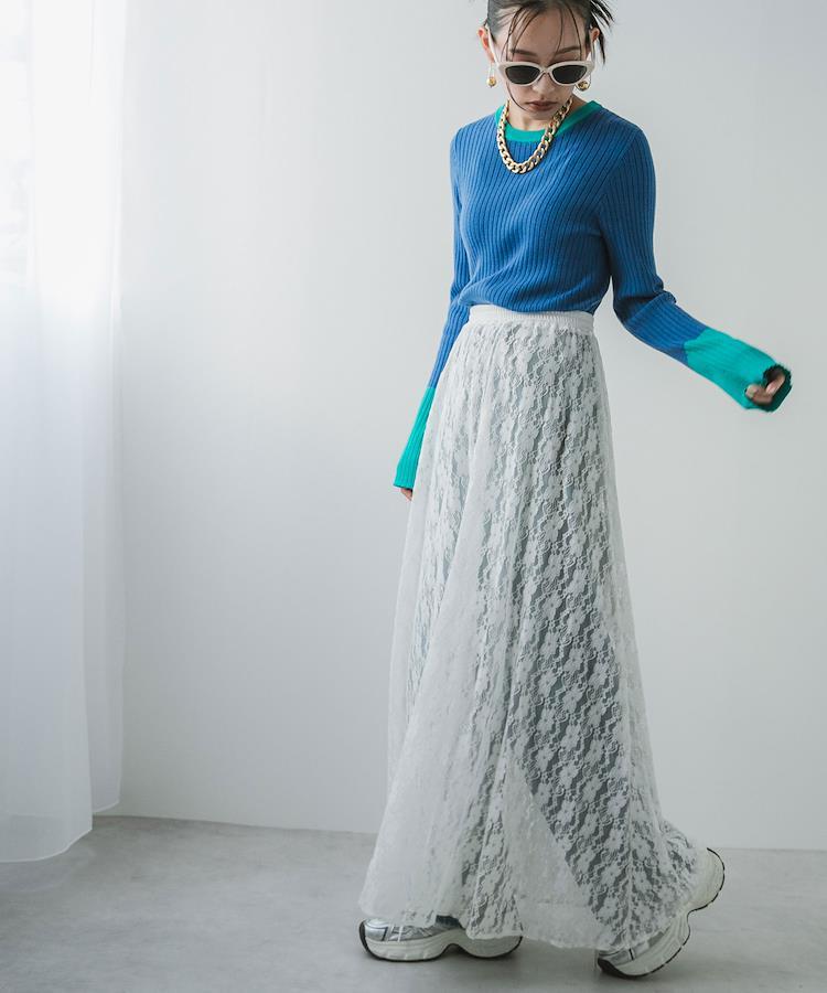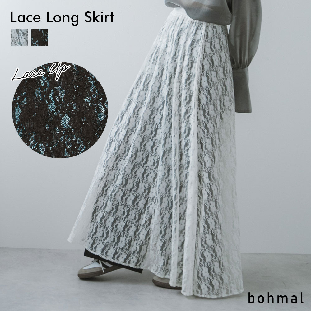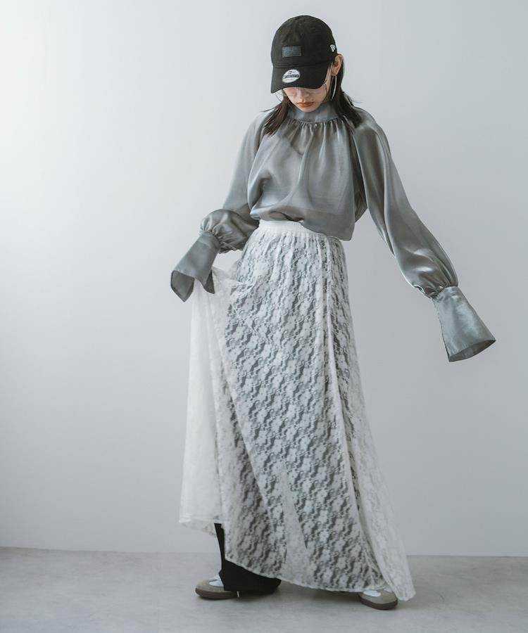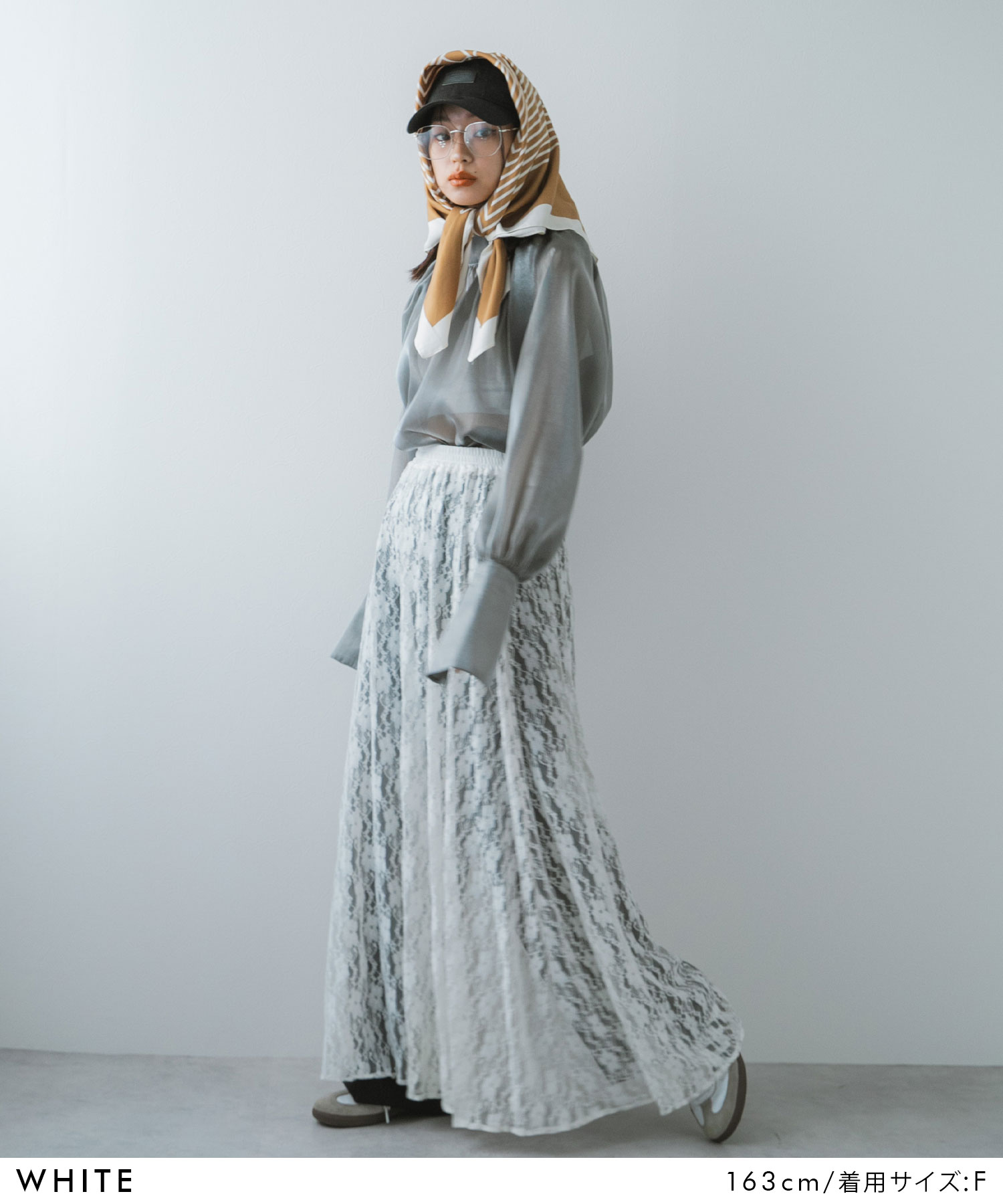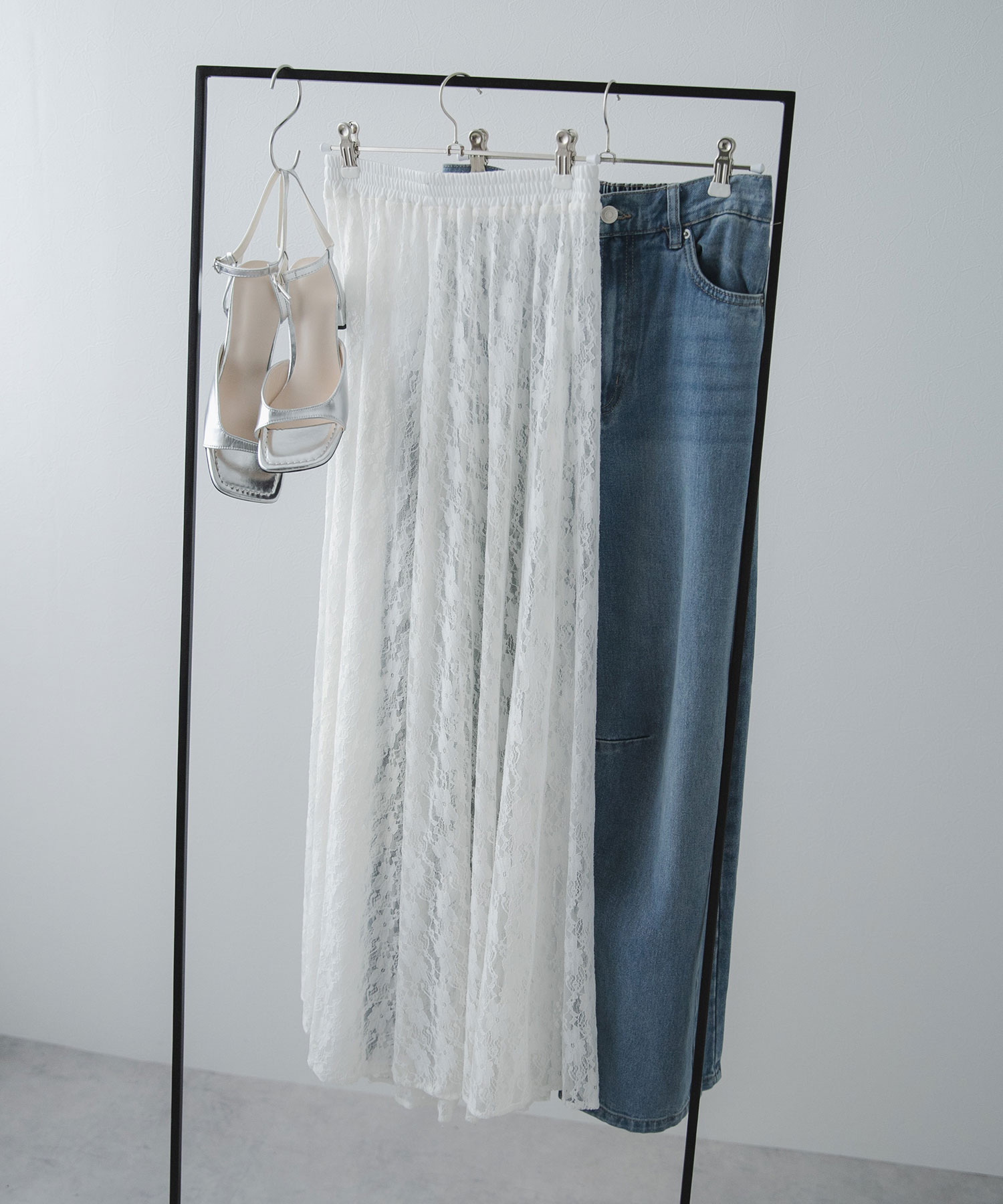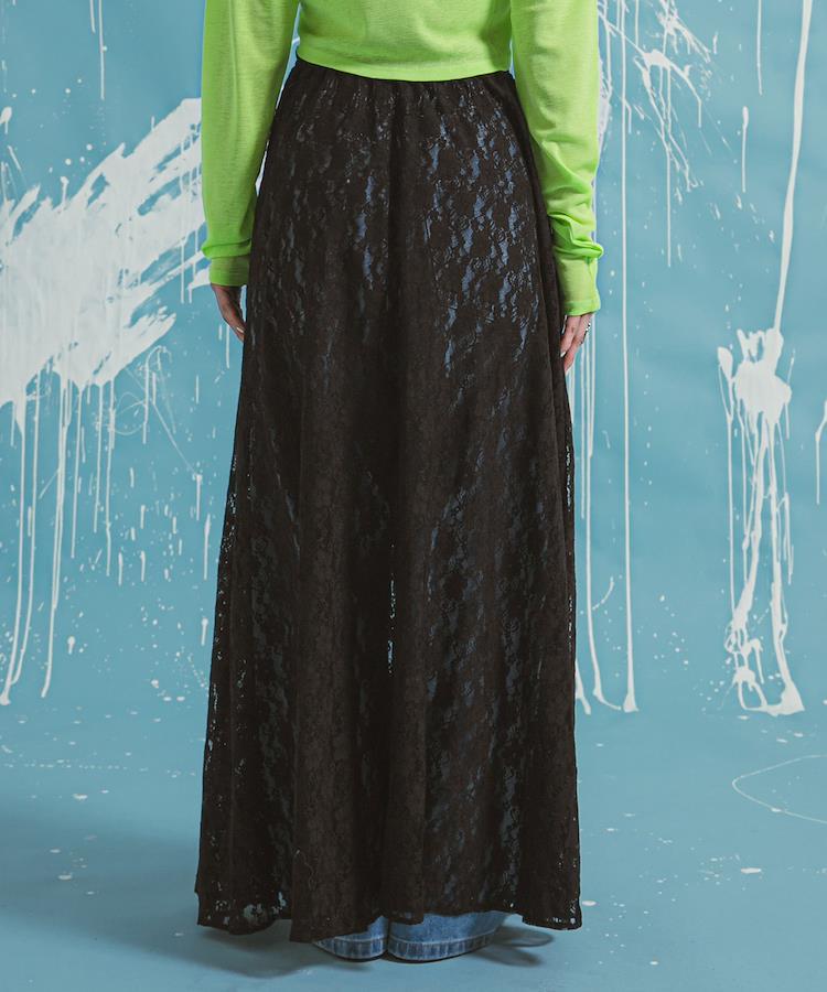 程よい透け感と甘すぎず、カジュアルすぎない印象のレース生地を使用したマキシスカート。