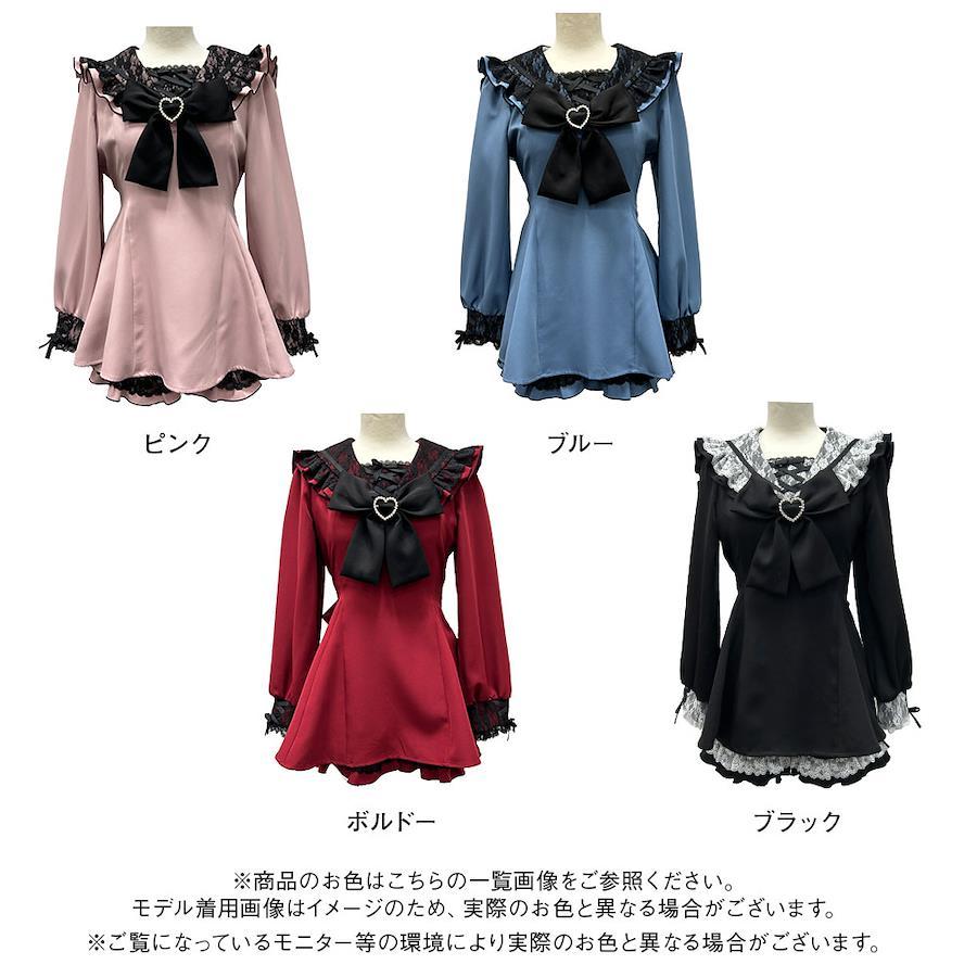 胸元リボンは安全ピンで取り外し可能です。3つついているのでリボンはいつでもかわいく安定します。