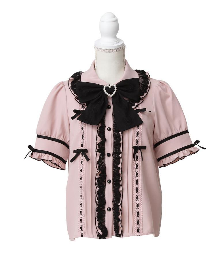 はしごレースがあしらわれたリボンたっぷりのかわいい丸襟ブラウスが登場♪