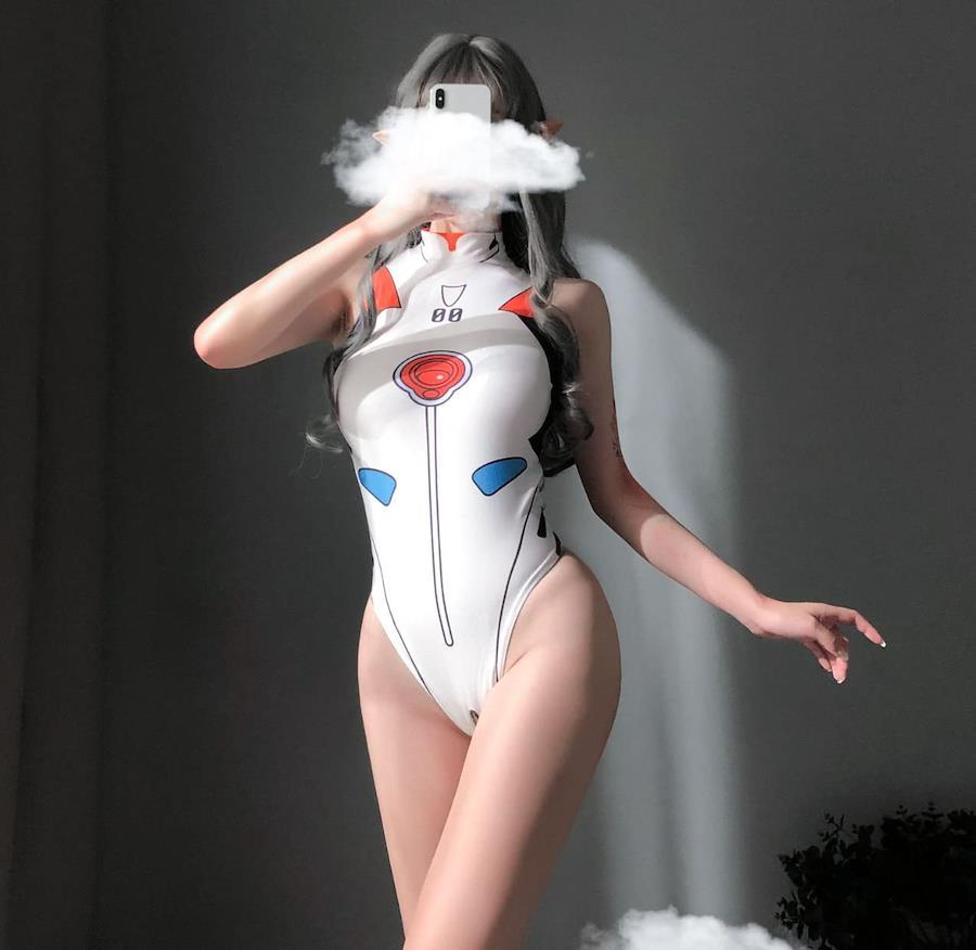 Lady Lazy Sexy Pilot Cosplay Suit, Eva Gundam Ayanami Bodystocking (White)