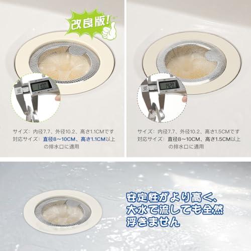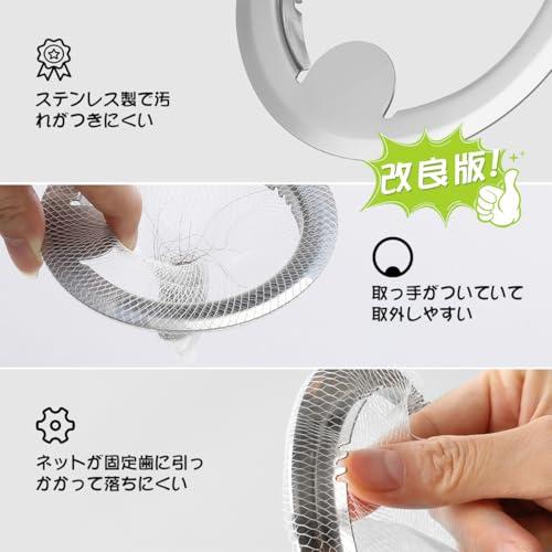【改良版 仕様】内径7.7、外径10.2、高さ1.1cmです。 直径8~10cm、高さ1.1cm以上の排水口に適用。 【掃除から解放】髪の毛キャッチャーにネットを装着することで、お風呂内の髪の毛や細かいゴミをしっかりキャッチします。お掃除の際はネットを取り替えるだけなので、掃除作業が減り、面倒だった排水口のお掃除が楽になりました! 【衛生的】髪の毛キャッチャーは髪の毛をしっかりキャッチしてくれるので、排水溝のつまりや汚れが溜まりにくく、お風呂を清潔に保つことができます。 【ステンレス製】ステンレス製で汚れがつきにくく、洗いやすい形状、サッと洗えてお掃除らくらく、水の流れで簡単に浮くこともありません。取っ手がついていて取外しやすいし、底には固定歯がついているので、ネットが引っかかって外れるのを防ぎます。 【LANMU保証】商品に不具合がございましたら、ご連絡を頂けると迅速にご対応させていただきます。最高の商品とより良い顧客サービスを提供できるよう日々努力しております。