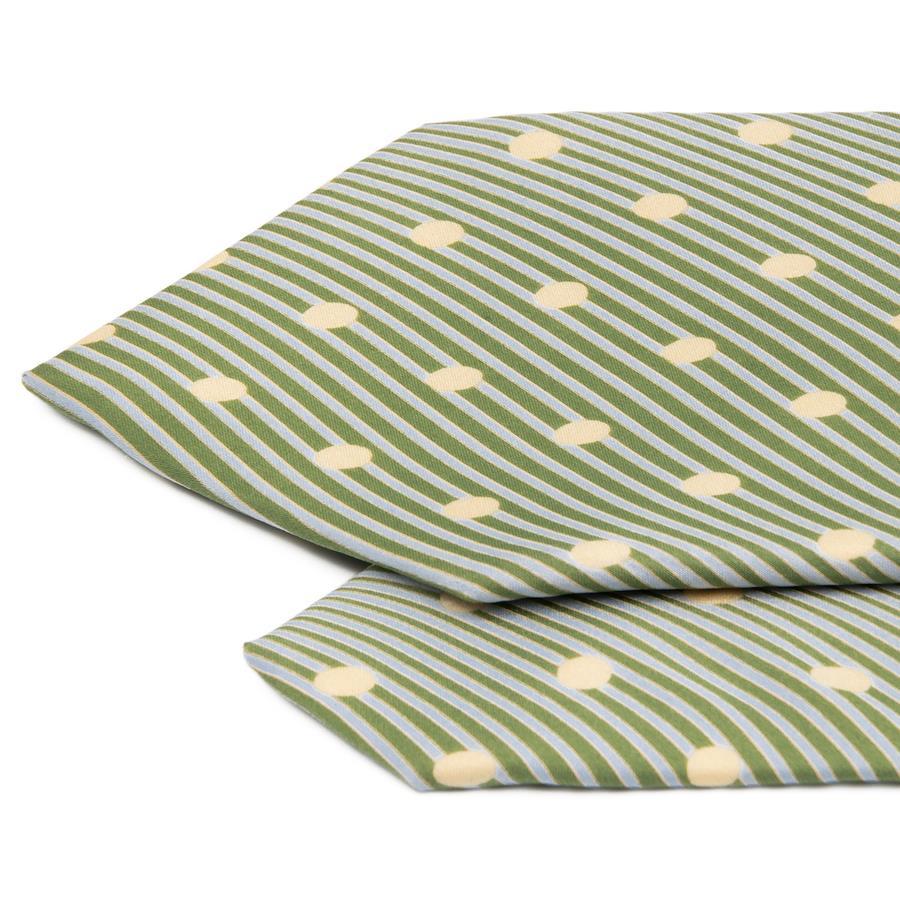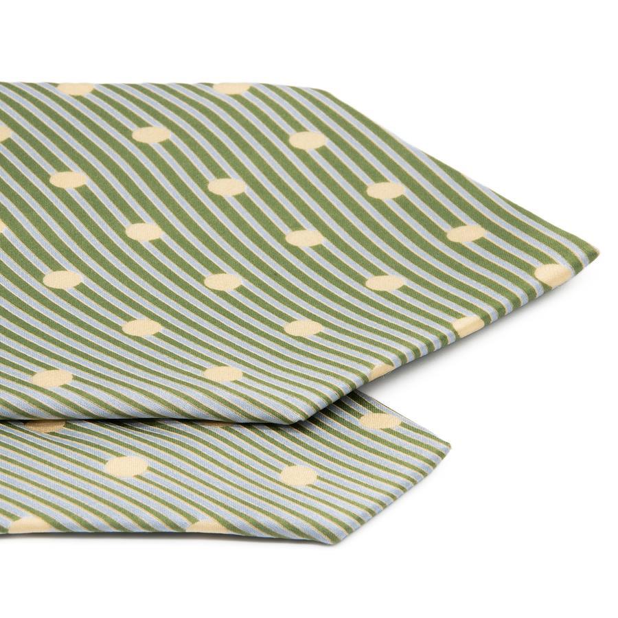 美しいグリーンと水色のストライプに、ベージュのドットが散りばめられた洗練されたデザインとなっております。