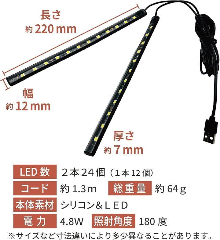 「商品仕様」LEDライト:長さ 約220mmx幅 約12mmx厚さ 約7mm。