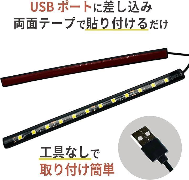 このLED車内ライトはUSB給電なので、ケーブルをシガーソケットのUSBポートに差し込み、あとは貼り付けるだけで様々な車種にて手軽で簡単に使用することができる車用品です。