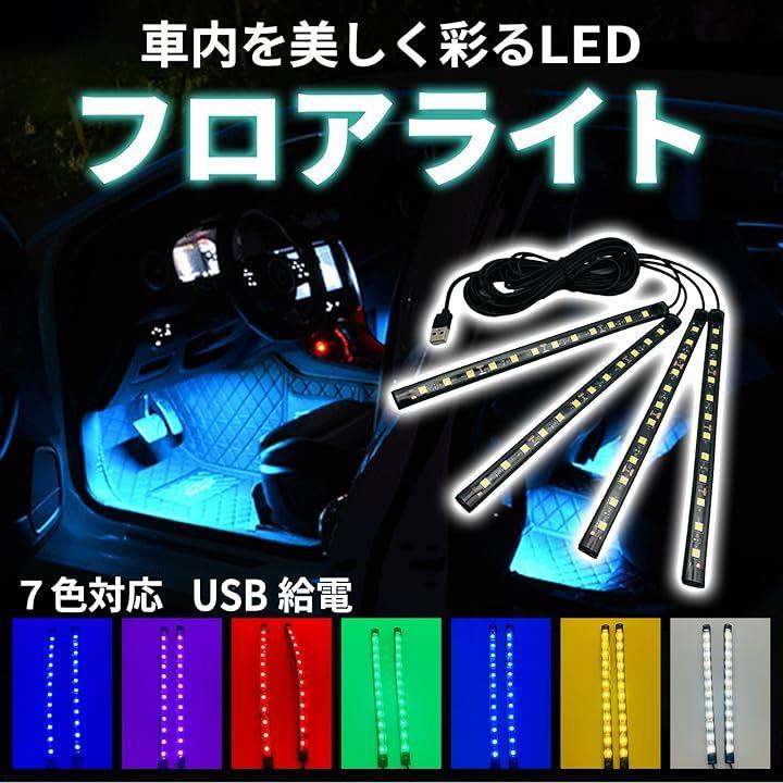 「美しく光るLEDテープライト」この高輝度のフロアライトは、1本に12個のLEDライトがあり、車内を優美に照らすアンビエントライトとして使用できます。