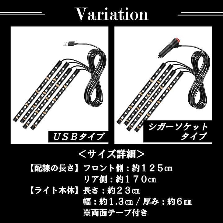 「ムードを演出」このUSBとシガーソケット対応のテープライト、LEDイルミは、車内の雰囲気を一変させます。