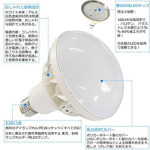 【製品仕様】◆LEDバラストレス水銀灯 PAR56 ◆消費電力:50W◆全光束:8000LM◆口金:E39◆サイズ:165*230MM◆重さ:1.04kg◆入力電圧:85V?265V◆演色性:80Ra以上◆定格寿命:50000h◆材質:PCカバー+アルミ放熱+電源内蔵(安全性よい)◆保護等級:IP65防水防雨防塵◆色温度:昼光色6000K ※e39ソケット照明器具交換可能。※従来の投光器500W~550Wにも使用可。※アイランプホルダ対応確認済み機種 岩崎、Panasonic、東芝などの アイランプ【超高輝度】全光束8000LM、日本製LED素子を搭載、発光効率:160lm/W、水銀ランプ500W相当。 駐車場 、広場 、倉庫 、工場、体育館、ホール、看板、作業灯、 天井照明 、led 工事灯、屋外照明、屋外灯、店舗のライトアップ、テラスや庭用の照明に最適。【優れる放熱性】寿命が短くなる原因は基本的に熱です。内蔵式高品質電源使用(短絡保護と高温保護の回路もあります)。内部はアルミニウムと熱伝導性樹脂を使用したハイブリッド構造の為、放熱ムラを最小限に抑え、限られたスペース内で効率良く放熱出来ます。熱伝導効率の高いアルミ基板、高放熱性で高寿命、省エネを実現。【省エネ、工事不要】消費電力50Wで明るさは500Wのバラストレス水銀灯、アイランプ、レフランプ相当、電気料金が大幅に削減できます;E39口金で従来のほとんどの器具に取り付け可能、工事不要ので電球交換のみで使用できます。【安全安心】出荷日から2年間で何か故障が御座いましたら、無料で修理や交換をさせていただきます。その時、往復の送料も当社よりご負担します。弊社のLED商品は全部PSE取得済、ノイズ対策済、国際ノイズ規格のCISPR15に準拠!安全性が高い、安心してご使用いただけます。