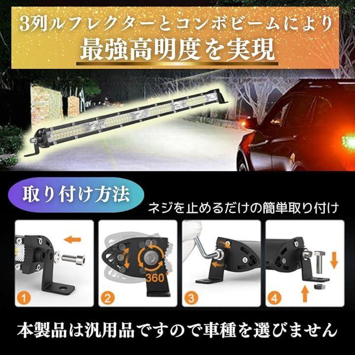 「仕様」サイズ(約):120w 33cmx5cmx3cm / 素材:アルミニウム合金製(本体) / 動作電圧: 9-30V DC(12V / 24Vに適合) / 消費電力: 60W120W/1個 / 防水性能: IP68 / ルーメン:8000LM 12000LM/1個 / 色温度: 6500K / LEDバルブ寿命: 30000時間以上 / セット内容: LEDライト1個(取付ネジ1式)