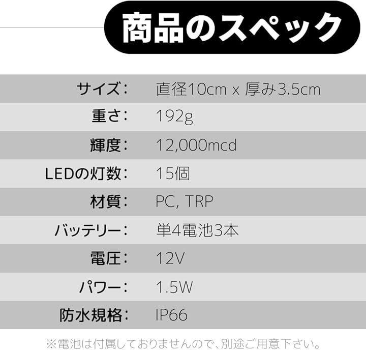 遠くから見てもとても目立つ明るさで、夜間作業や夜のウォーキング、自転車、バイクなどの表示灯や非常信号灯として、また、パトロールランプとしても使用でき使用方法はたくさんあります。