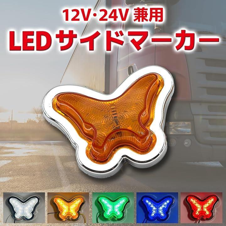 「エモい。LED蝶々マーカーランプ」デコトラ、軽トラカスタムパーツとして抜群の蝶型グリルマーカー。12V、24V対応の汎用タイプのサイドマーカーです。