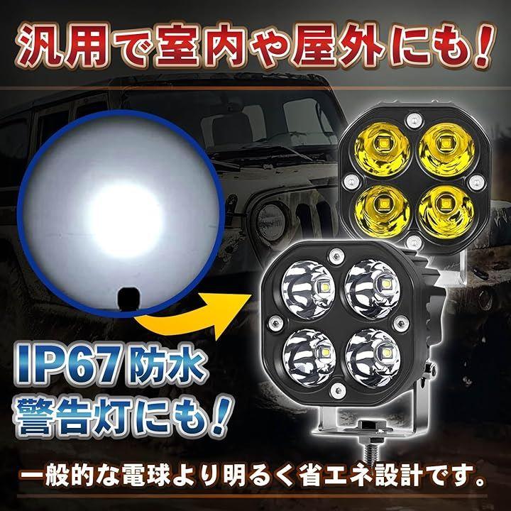 「仕様」LEDパワー:80W / ルーメン:合計8000LM / 動作電圧:10~30V DC(12V、24Vに適合)/ 色:イエロー(黄色)orホワイト(白) / 寿命:50000時間以上 / 適用温度:-40~85℃ / 寸法:3インチ / 材質:6063アルミプロファイル、ステンレススチールブラケット